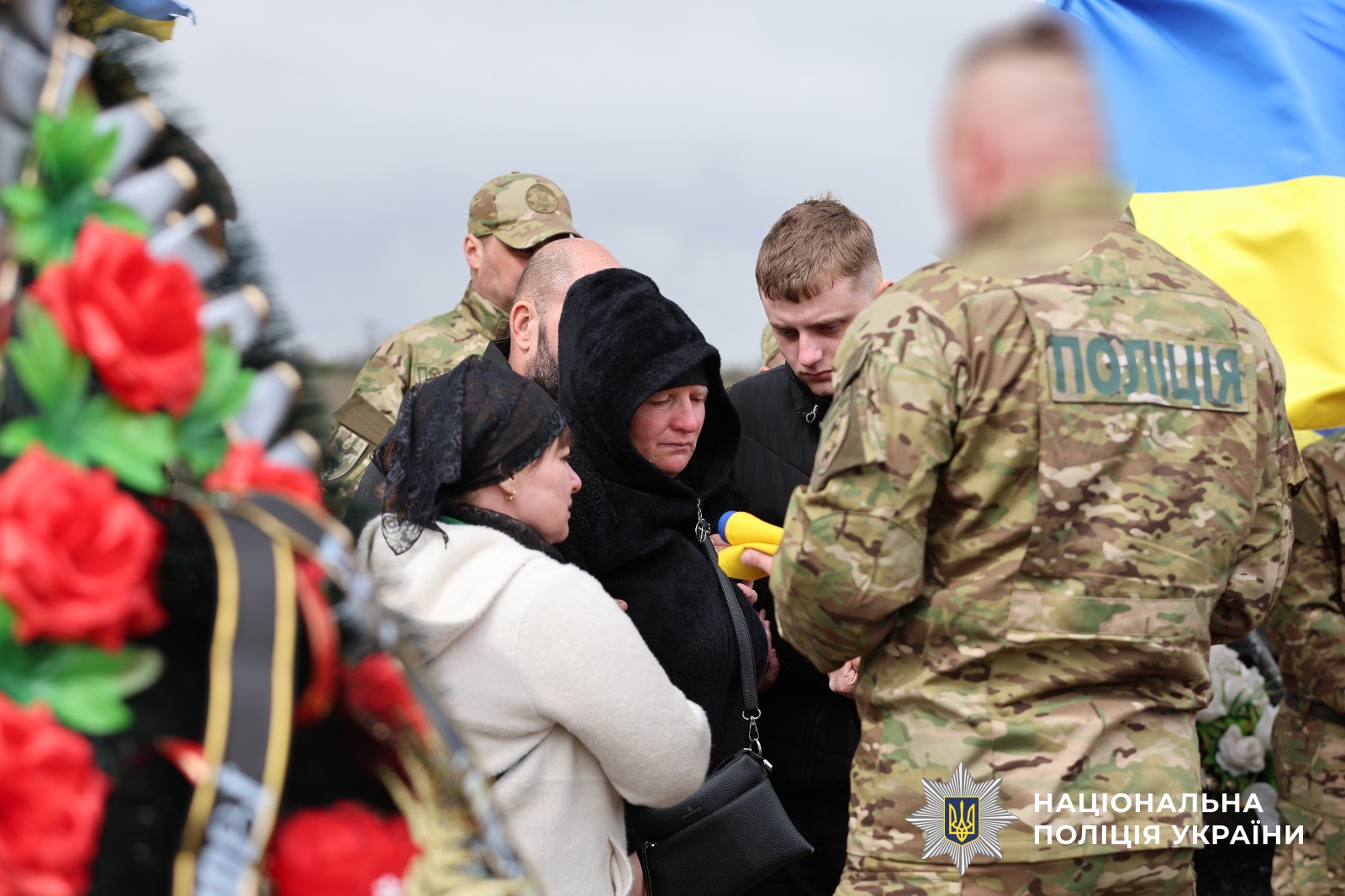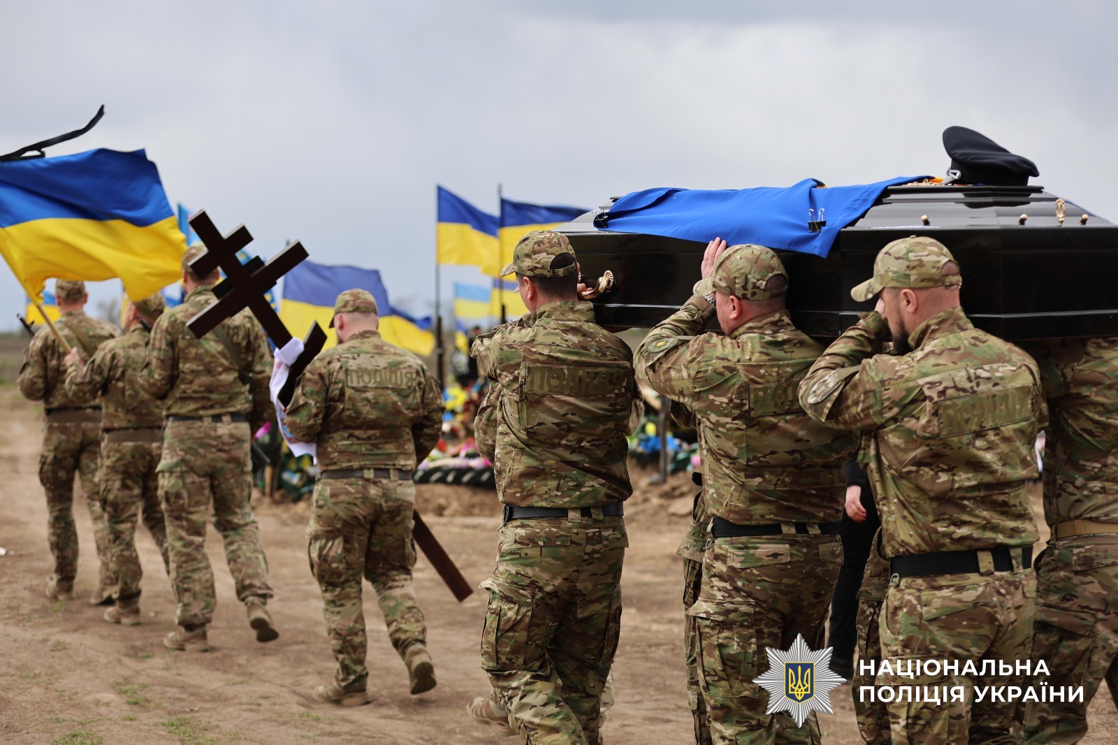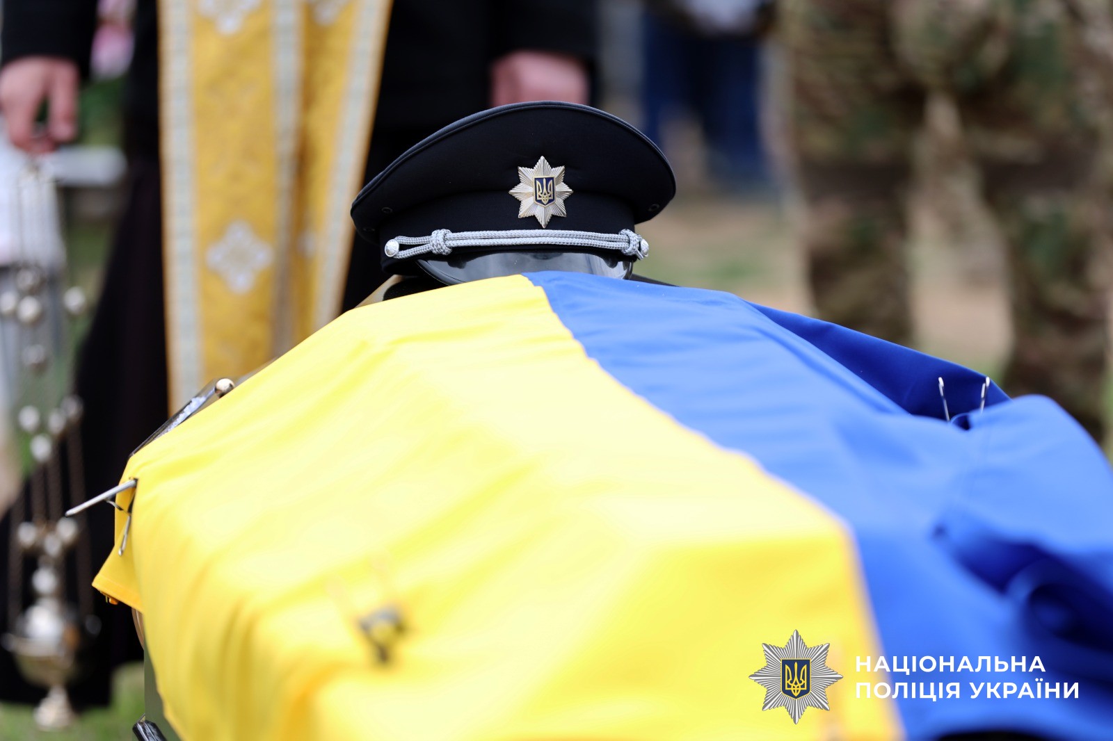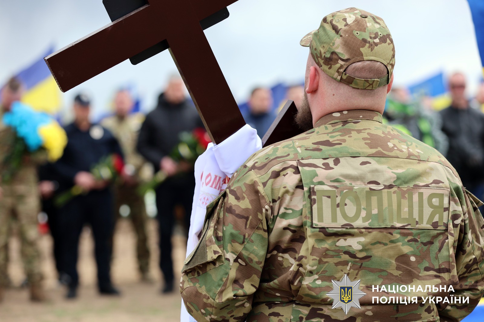 Поліцейські Херсонщини провели в останню путь свого колегу Віталія Кухарчука, який загинув внаслідок удару ворожого дрона