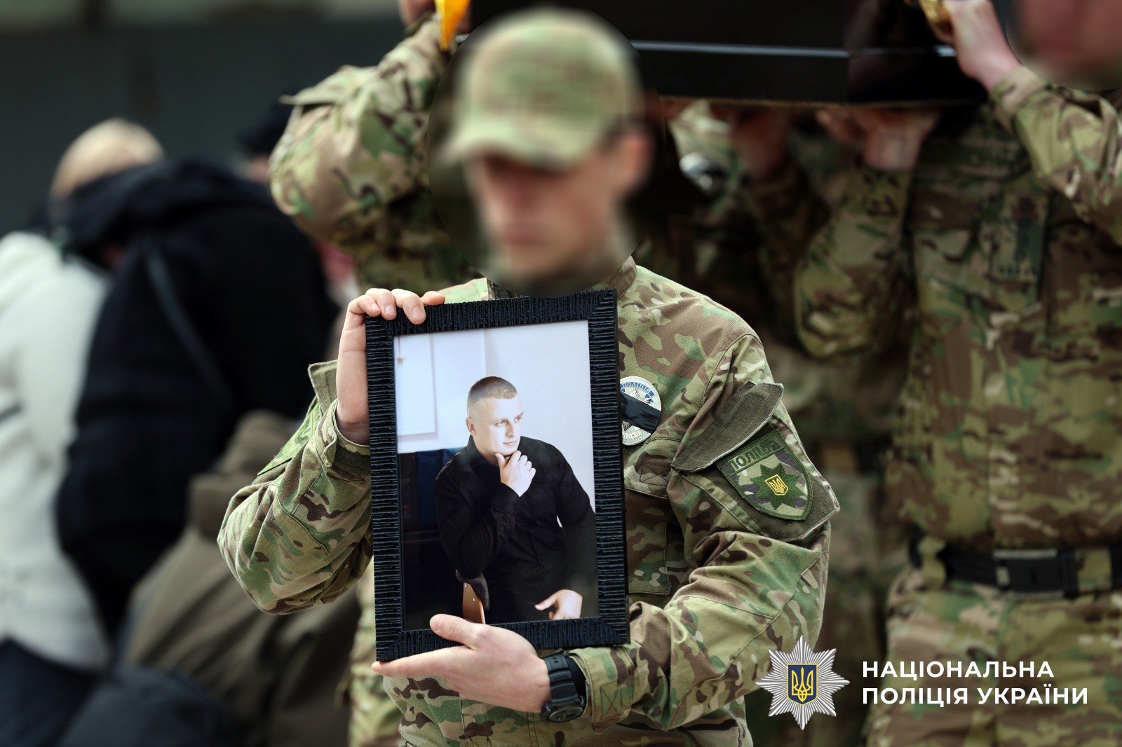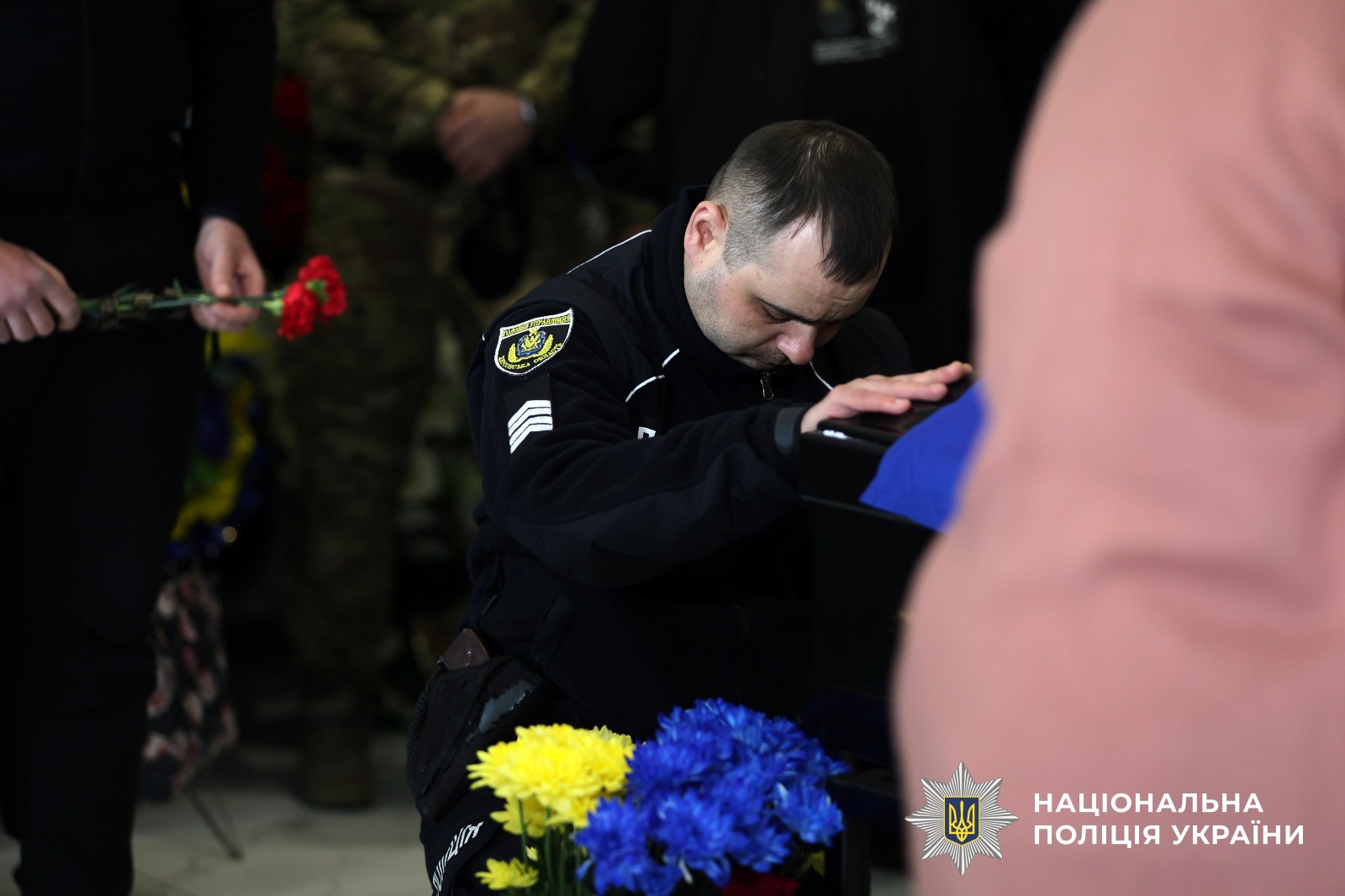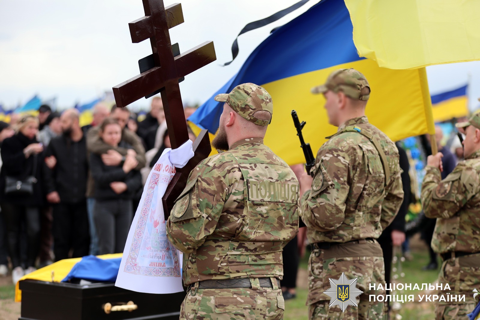 Поліцейські Херсонщини провели в останню путь свого колегу Віталія Кухарчука, який загинув внаслідок удару ворожого дрона