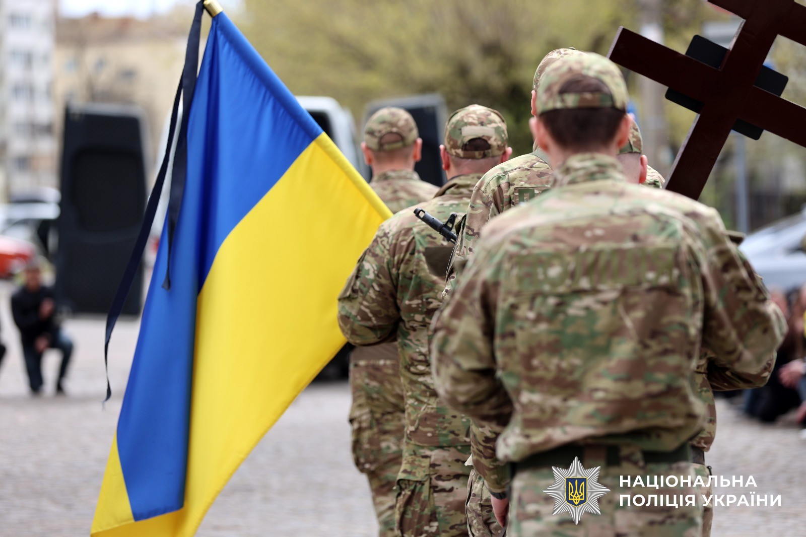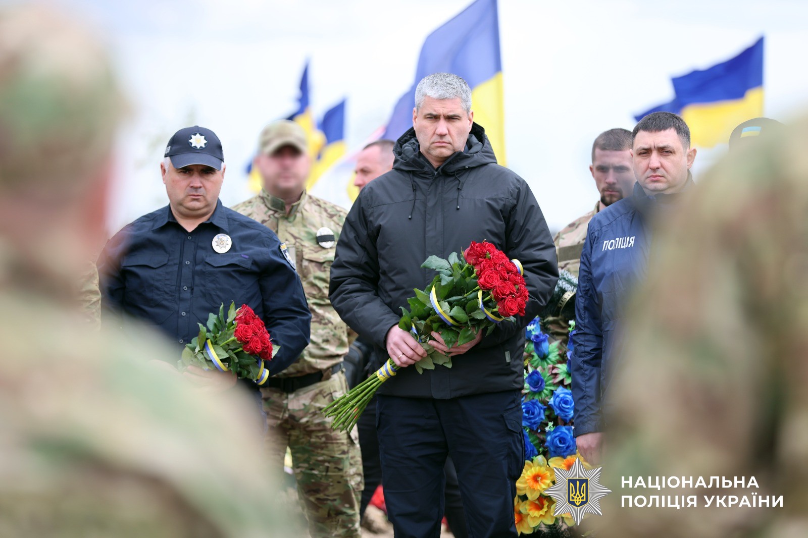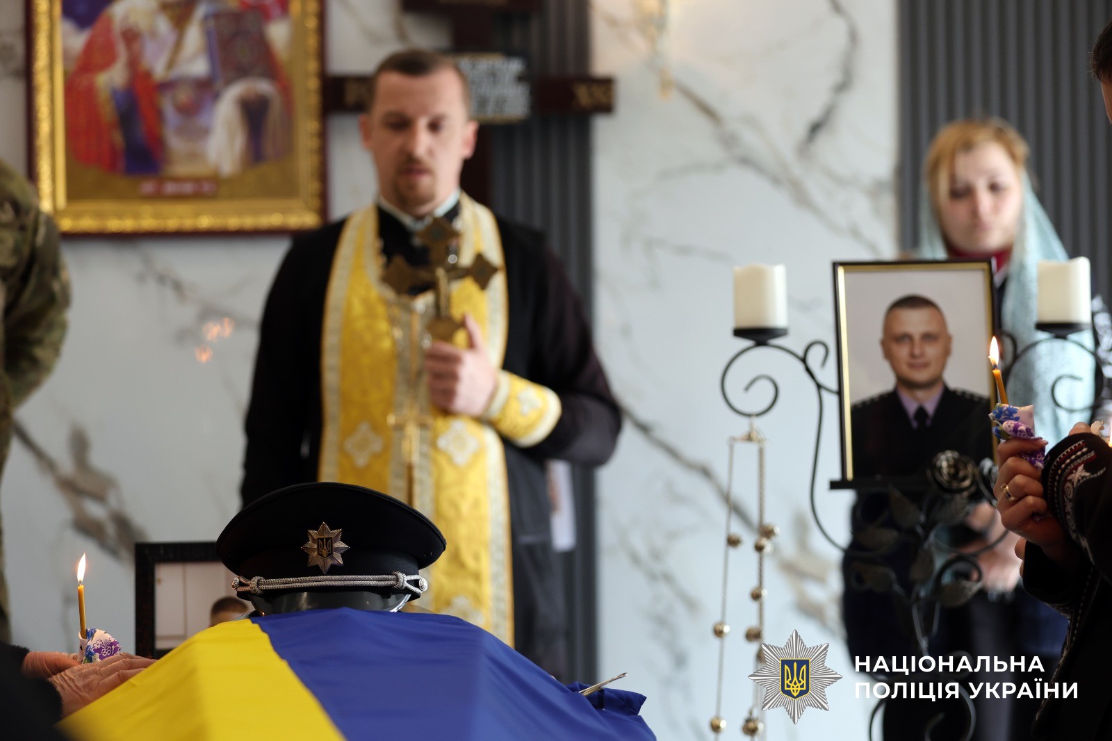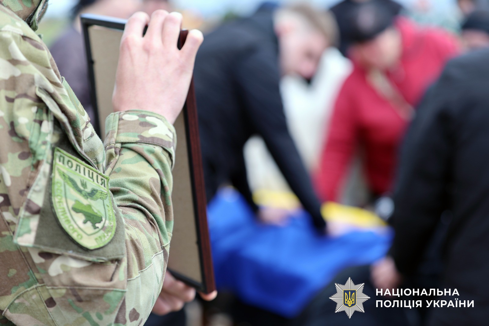 Поліцейські Херсонщини провели в останню путь свого колегу Віталія Кухарчука, який загинув внаслідок удару ворожого дрона