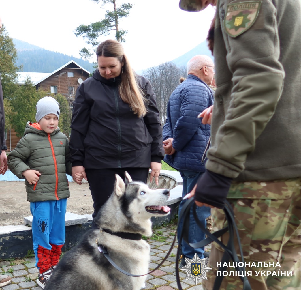 Кінологи поліції Прикарпаття привезли своїх чотирилапих помічників. Бійці гладили собак, усміхались і так - відволікалися від пережитого болю та тривог.