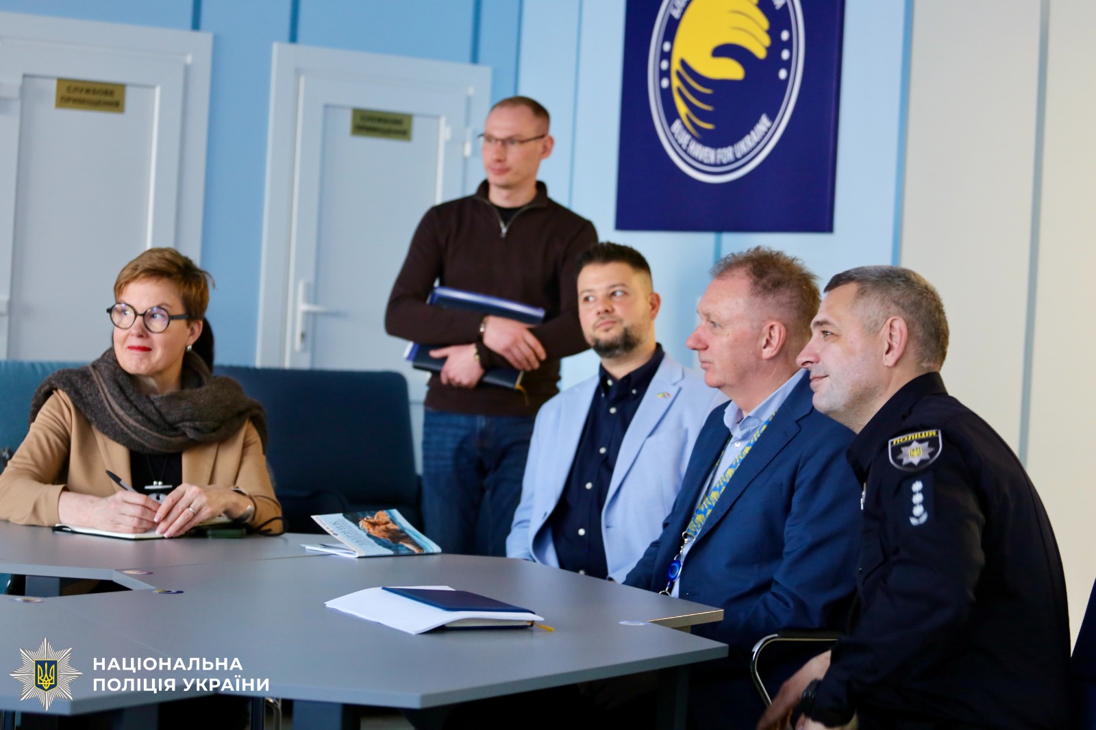 Гостей зустрічали начальник управління соціально-психологічної роботи Департаменту кадрового забезпечення Нацполіції Таміла Акопян, заступник начальника Департаменту міжнародного поліцейського співробітництва Володимир Шерстньов та начальник управління кадрового забезпечення столичної поліції Вікторія Азарова.