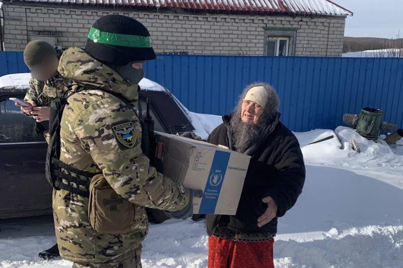 Поліцейські передали кожному мешканцю населеного пункту продуктові набори з найнеобхіднішими продуктами.