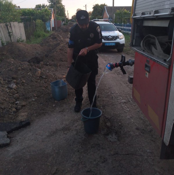 Голова громади звернулась до правоохоронців за допомогою і поліцейські офіцери громади не лишилися осторонь - разом з рятувальниками вони набрали воду у пожежні автомобілі та розвезли людям.