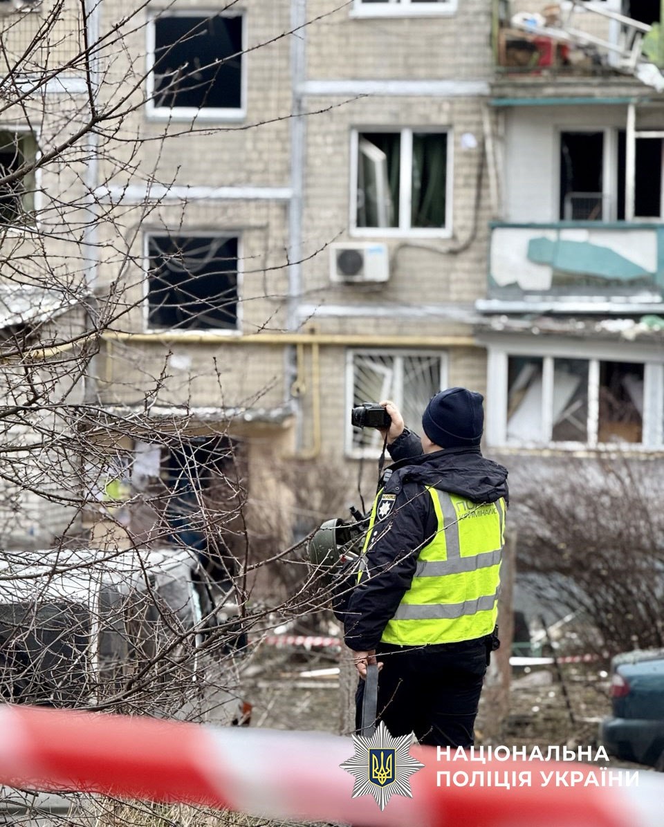 Поліцейські продовжують документувати наслідки ворожої атаки у Святошинському районі столиці