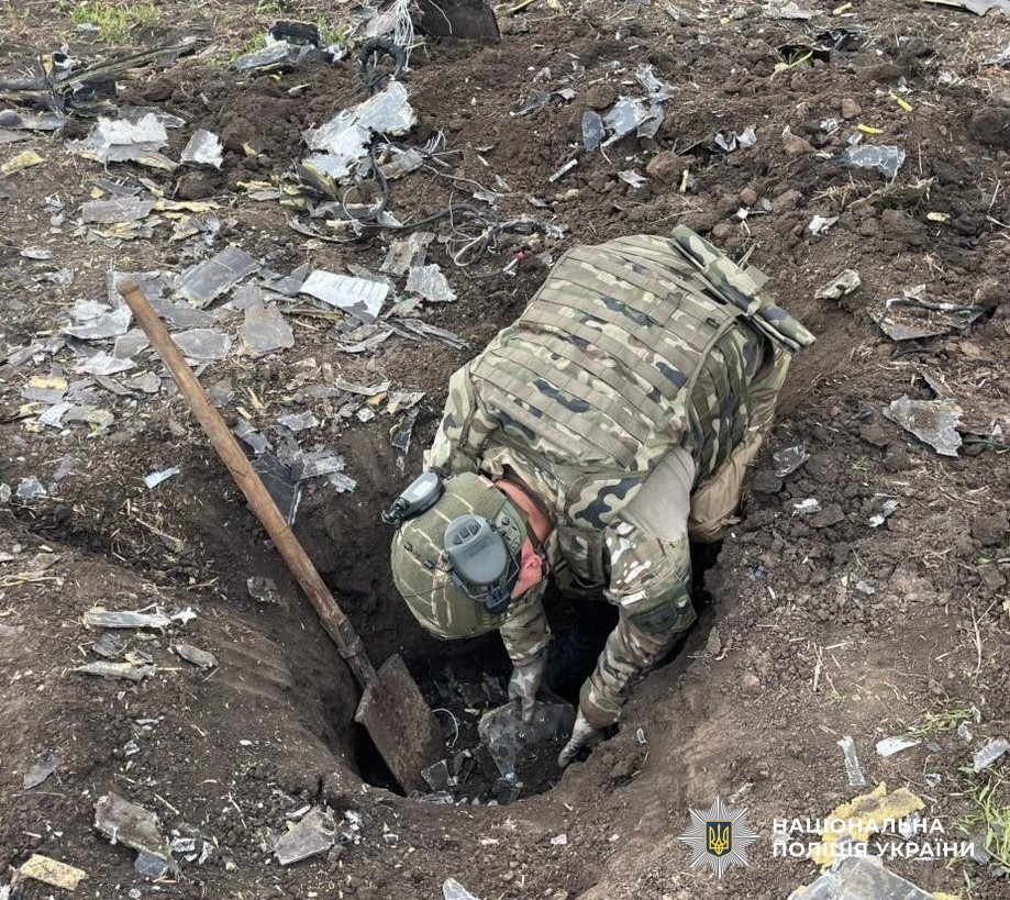 Після повітряної атаки рф на територію країни, в області на одній з присадибних ділянок виявили небезпечний об’єкт. Фахівці прибули на місце та встановили, що в землі застрягла бойова частина ворожого БпЛА вагою понад 50 кг.
