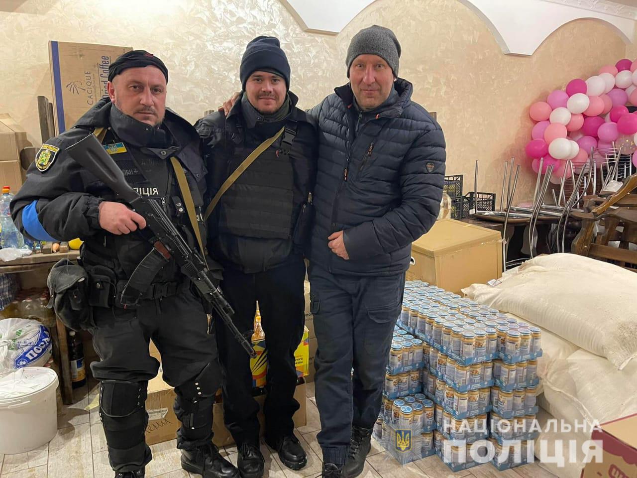 Поліцейські відділення поліції №1 Богодухівського РВП від блокпостів доставляють дитяче харчування, підгузки, ліки до волонтерської точки міста Валки.