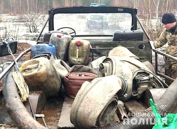Поліцейські упродовж трьох діб провели 25 санкціонованих обшуків та відпрацювали місця незаконного видобутку бурштину-сирцю у 26 урочищах. За результатами правоохоронці вилучили понад 100 кілограмів бурштину-сирцю, 24 мотопомпи, зброю та транспорт.