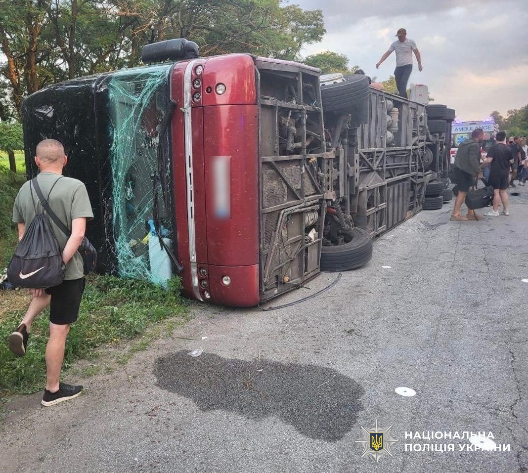 За попередньою інформацією, водій автобуса «VAN HOOL» не впорався з керуванням, внаслідок чого транспортний засіб виїхав за межі проїзної частини та перекинувся.