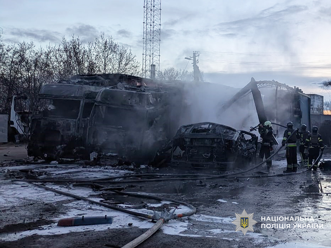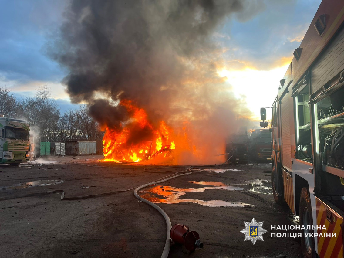У м. Мена Корюківського району внаслідок ударів росіян по приватній автостоянці знищено та пошкоджено вантажні автомобілі.