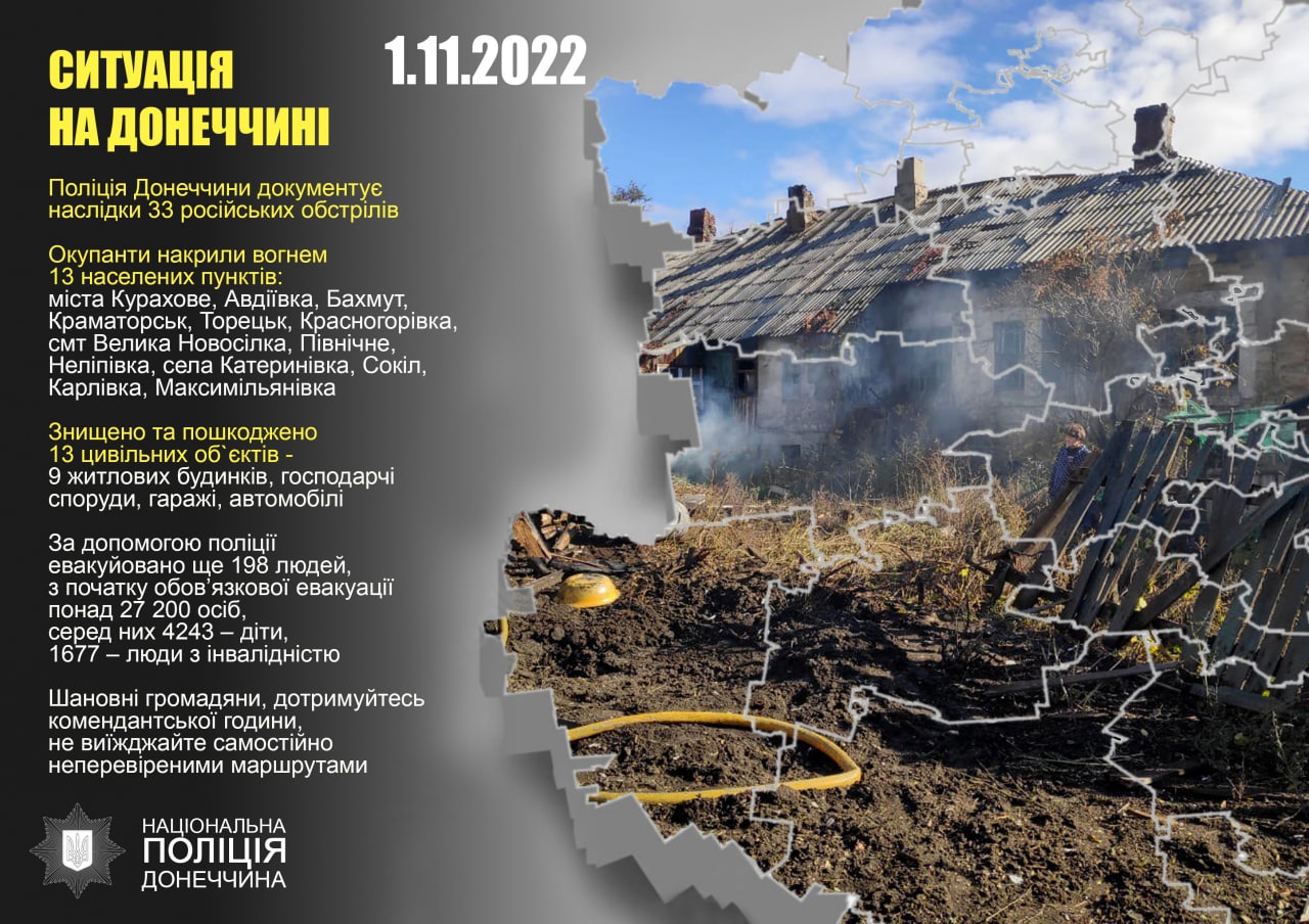 Поліція Донеччини документує наслідки 33 російських обстрілів