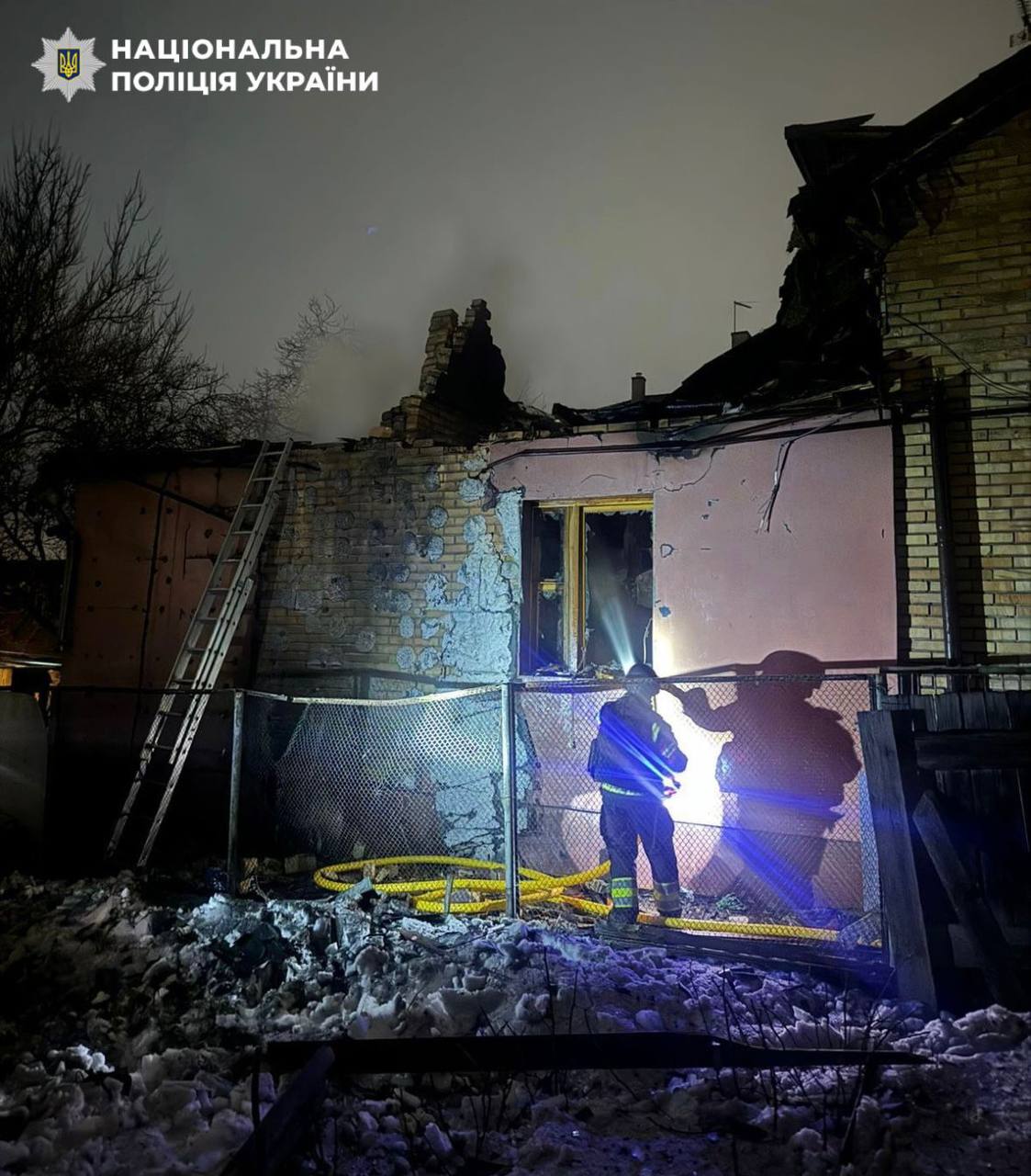 Печерський район - зафіксовано влучання уламків у двоповерховий приватний житловий будинок із подальшим загоранням.
