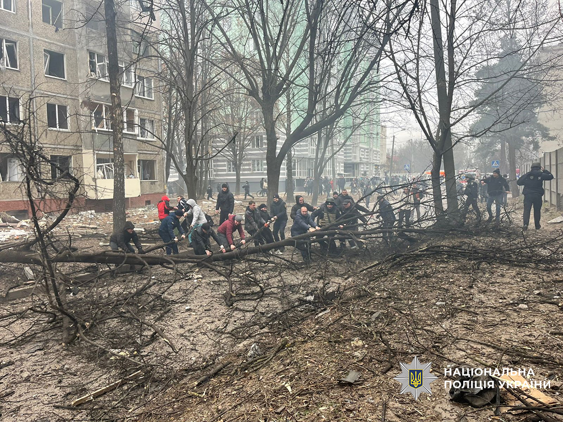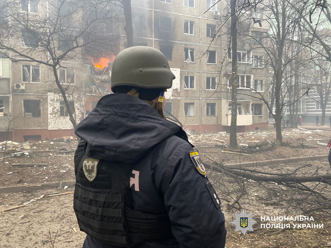 Поліція працює на місці влучання російського безпілотника по п'ятиповерхівці в Чернігові