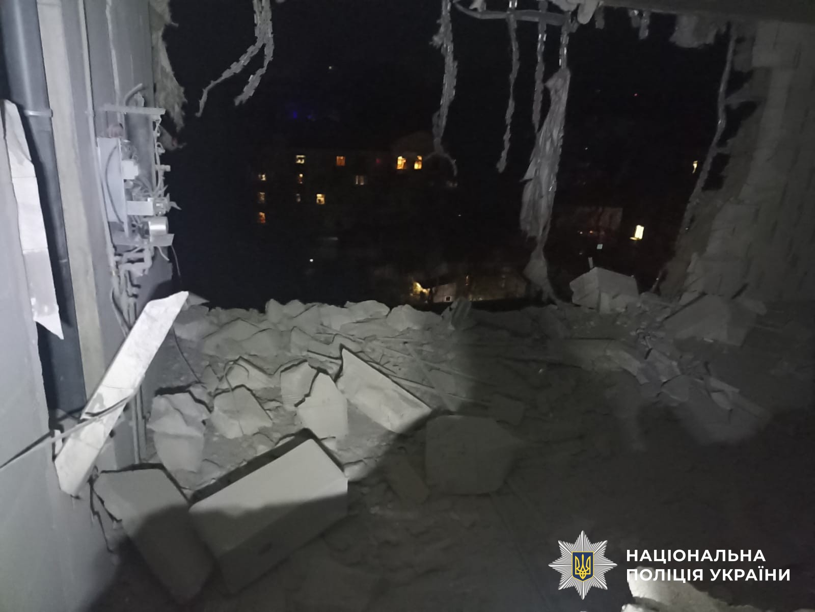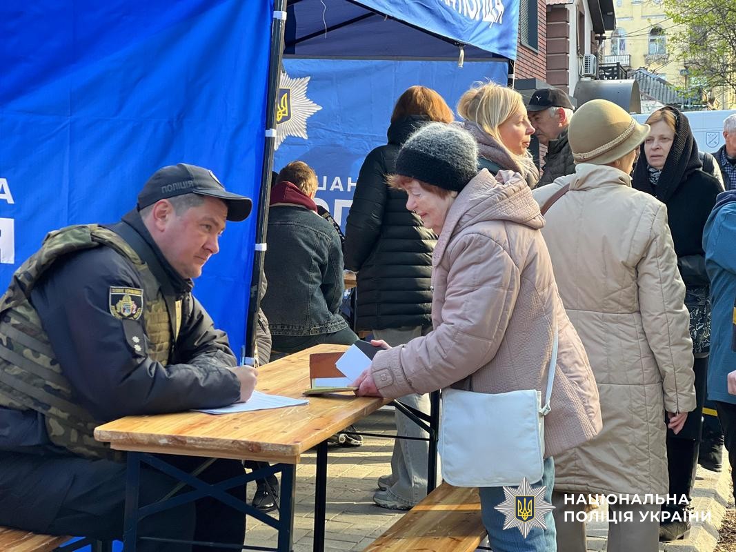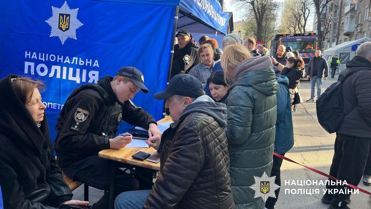 Поряд з місцем ураження поліцейські розгорнули пункт прийому звернень громадян, де люди можуть подати заяви щодо пошкодженого майна.