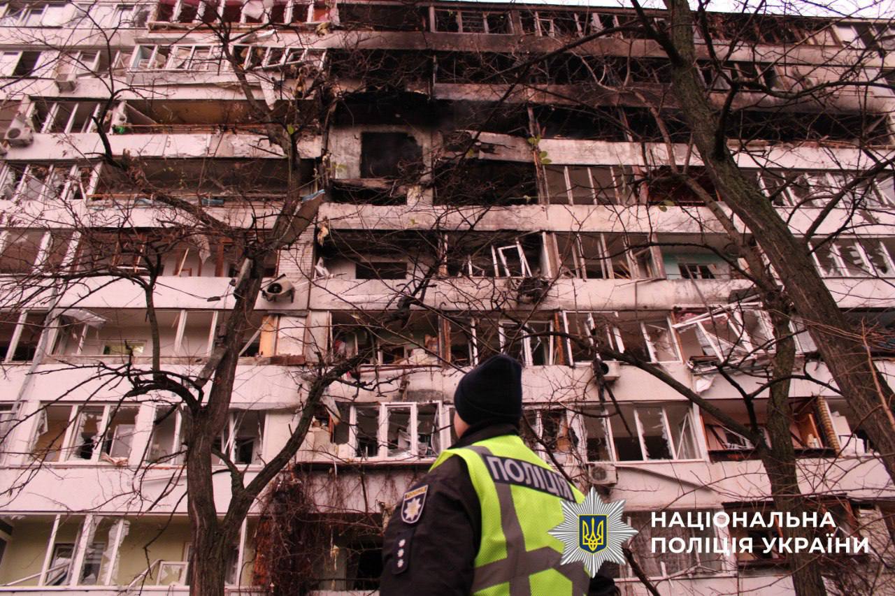 Поліція продовжує фіксувати наслідки ворожої атаки на Київ