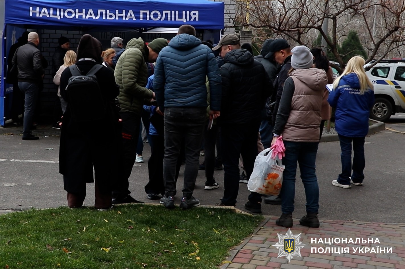 На місці триває прийом заяв від потерпілих. Станом на 16:40 до поліції надійшло понад 200 повідомлень про пошкодження майна внаслідок ракетної атаки рф.