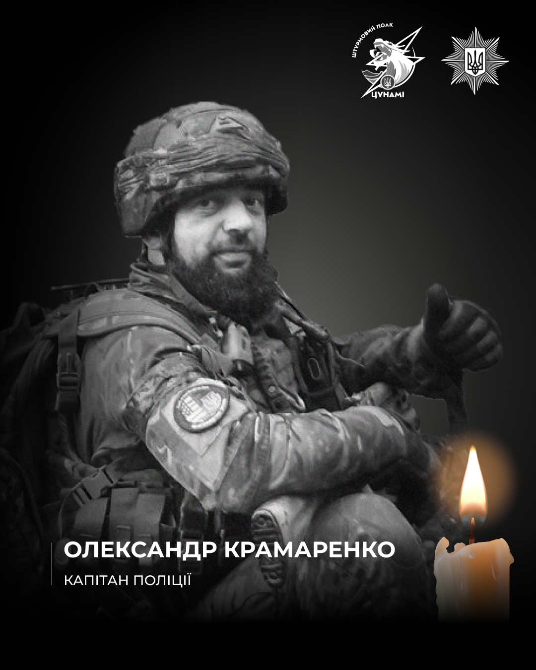 Поліція Рівненщини у скорботі: на війні загинув боєць штурмового полку «Цунамі» бригади Нацполіції «Лють» Олександр Крамаренко