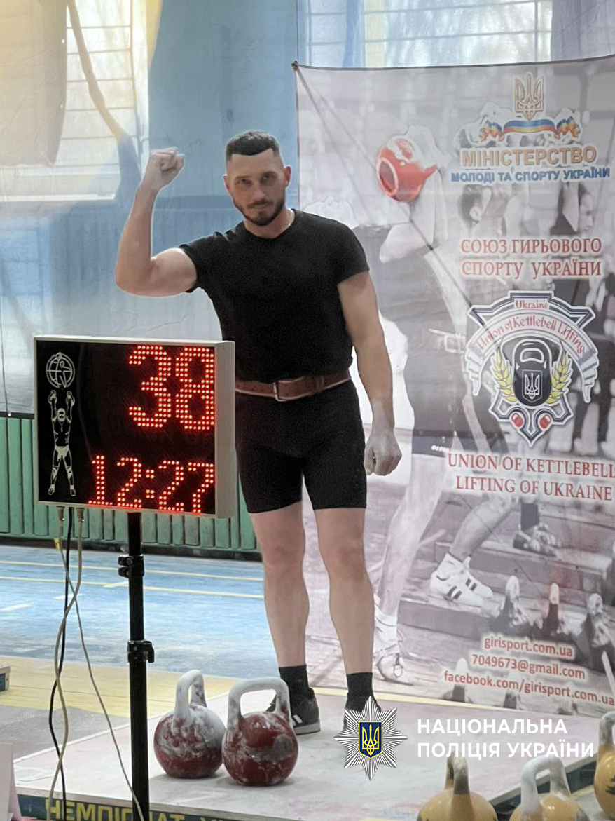 Поліцейський Євгеній Каліберда – один із найсильніших представників гирьового спорту в Україні, відданий своїй справі, наполегливий і цілеспрямований. Він уміло поєднує службу в поліції з серйозними спортивними досягненнями, демонструючи витримку, силу характеру та дисциплінованість. Нещодавно Євгеній став призером Чемпіонату України з гирьового спорту та членом Національної збірної.