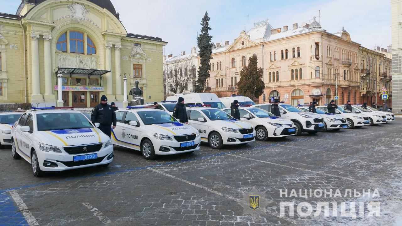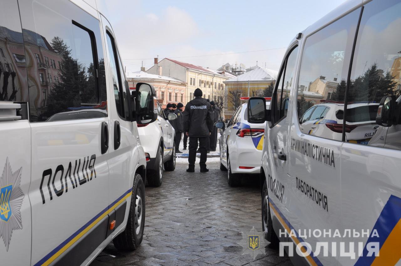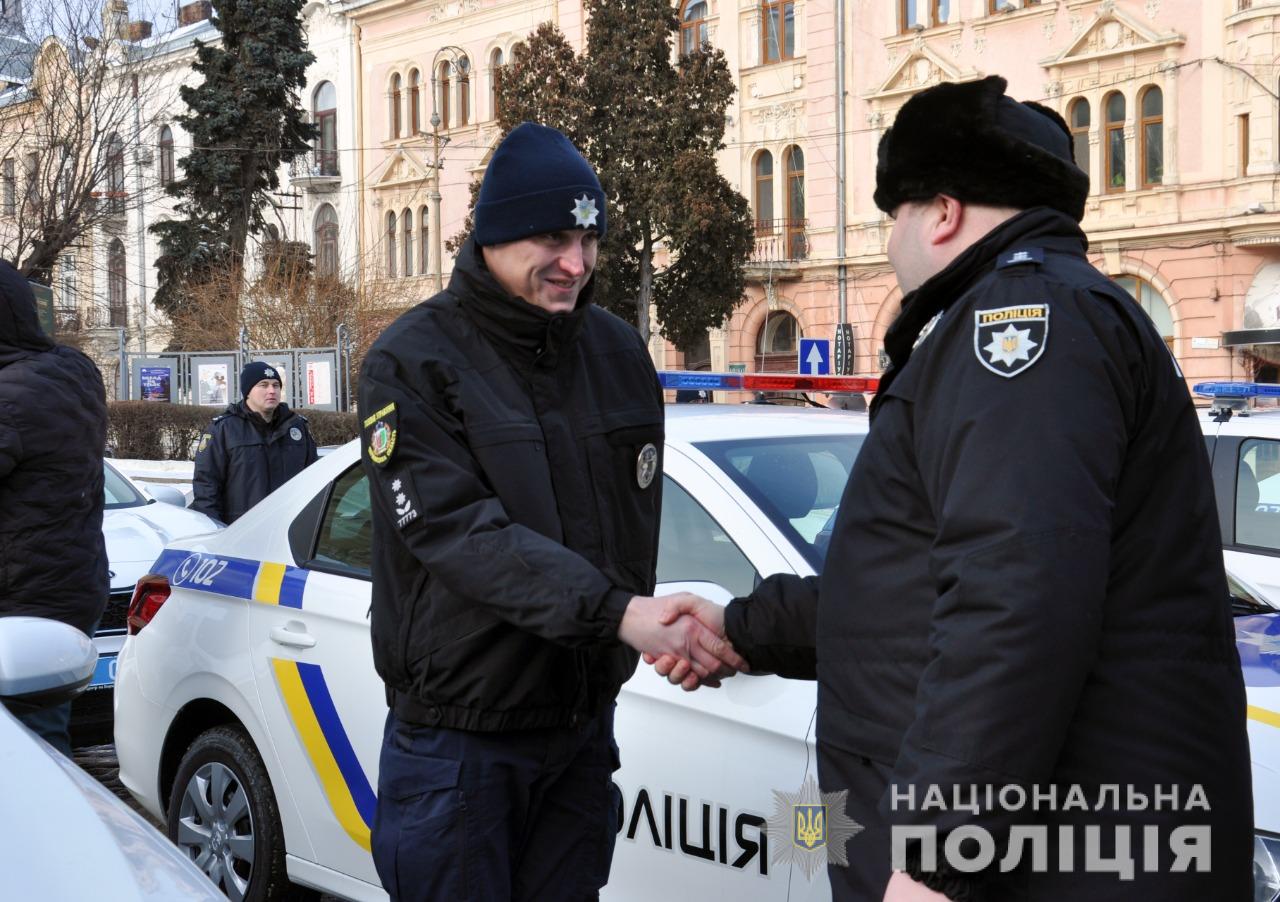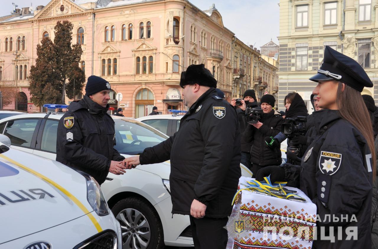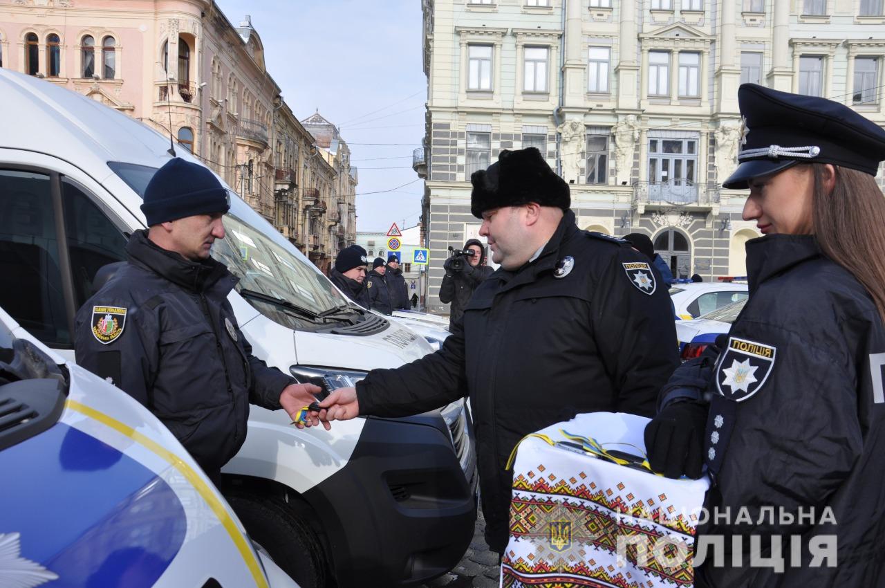 Урочисте вручення ключів від нових поліцейських автомобілів відбулося на Театральній площі Чернівців і приурочене Дню Соборності України.