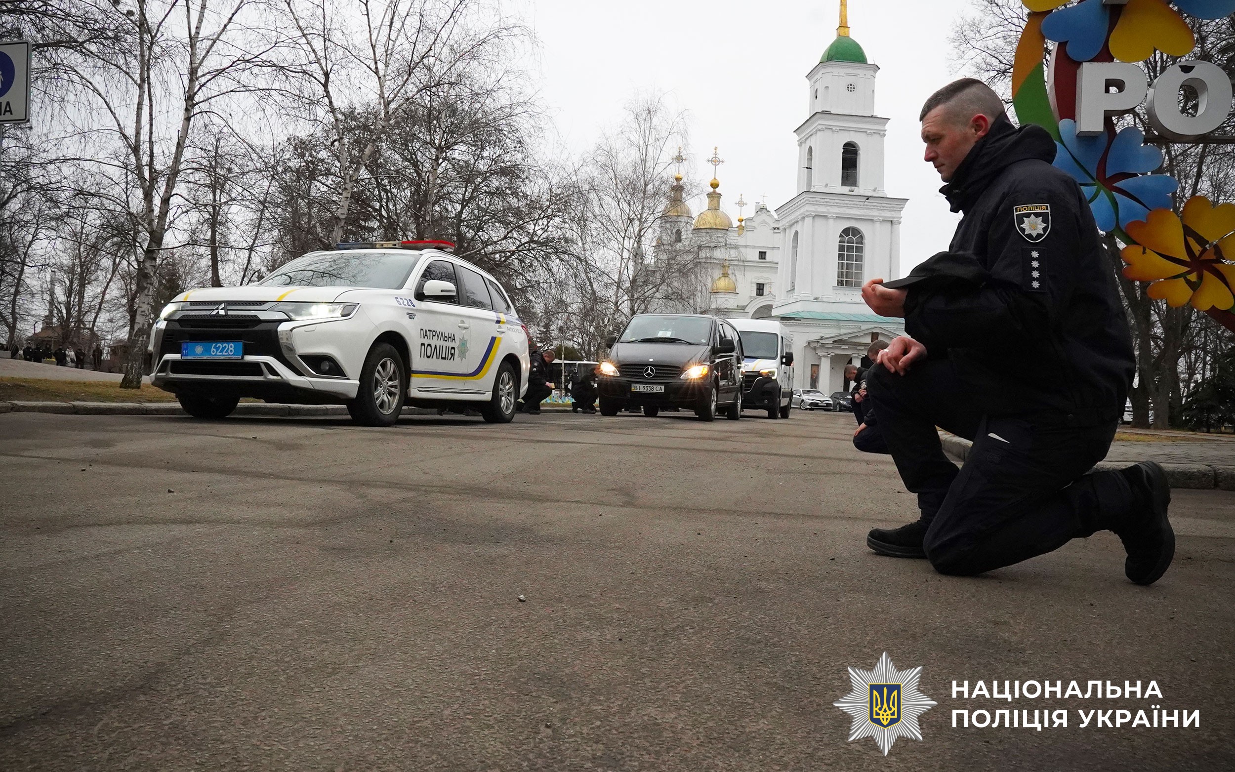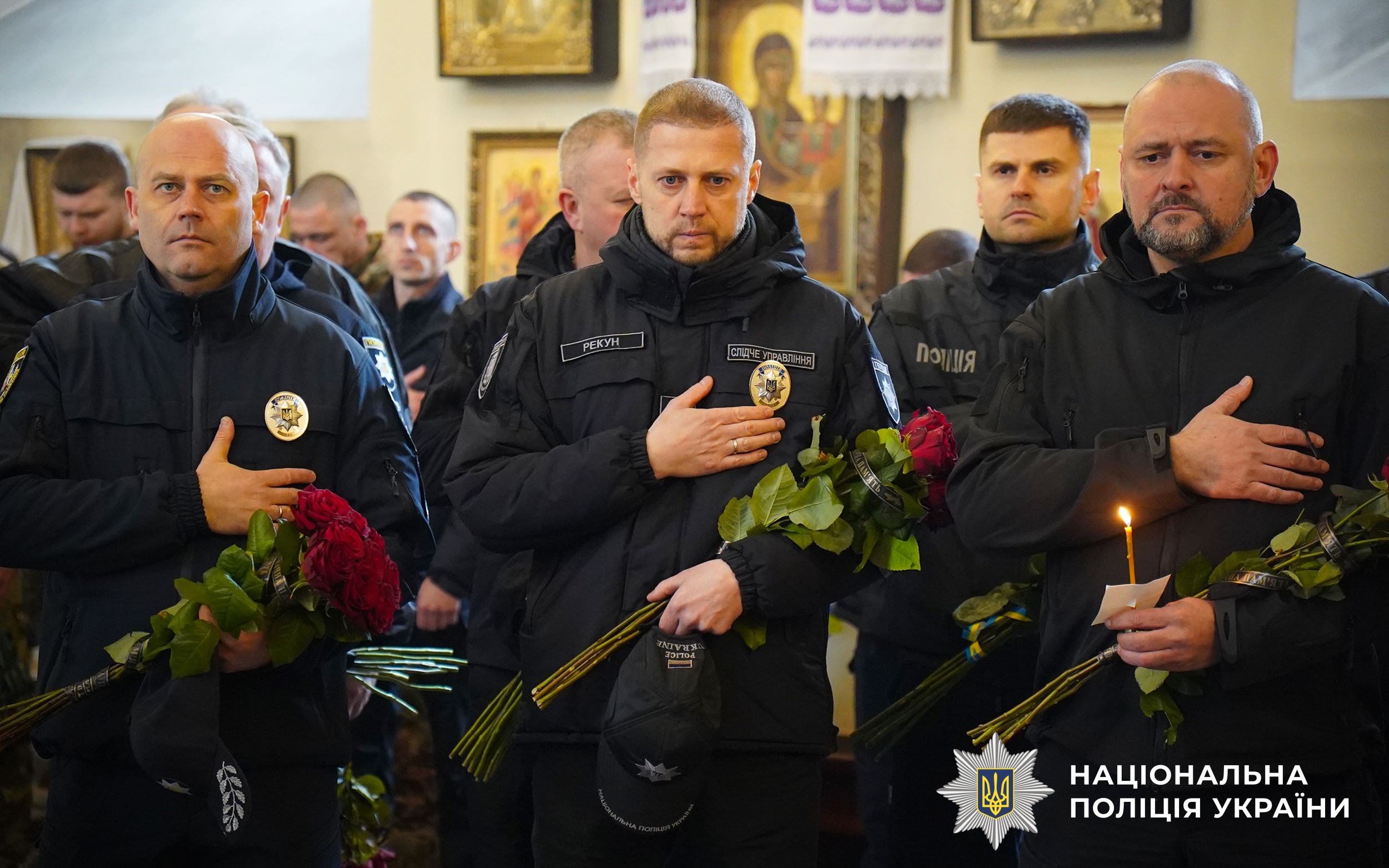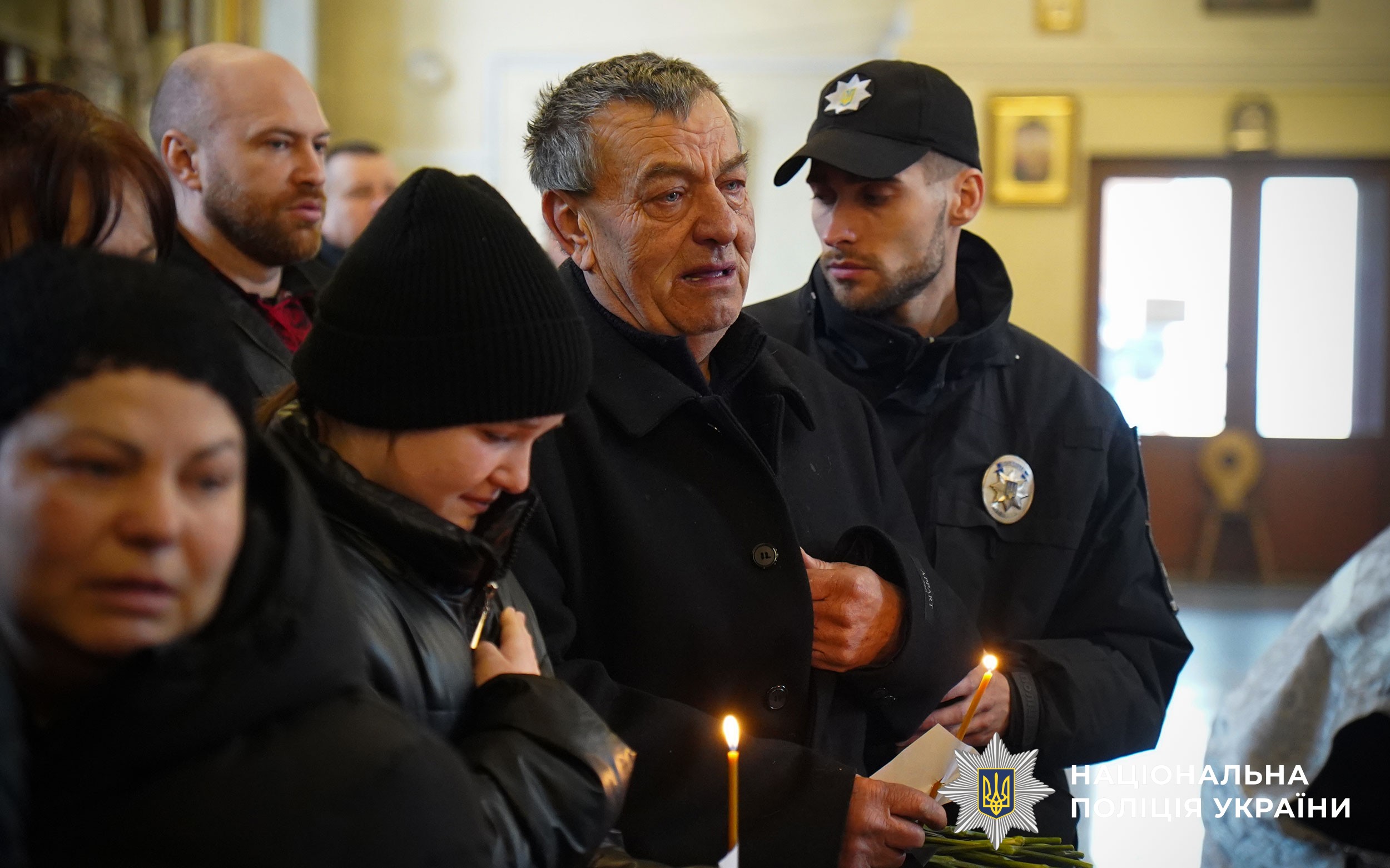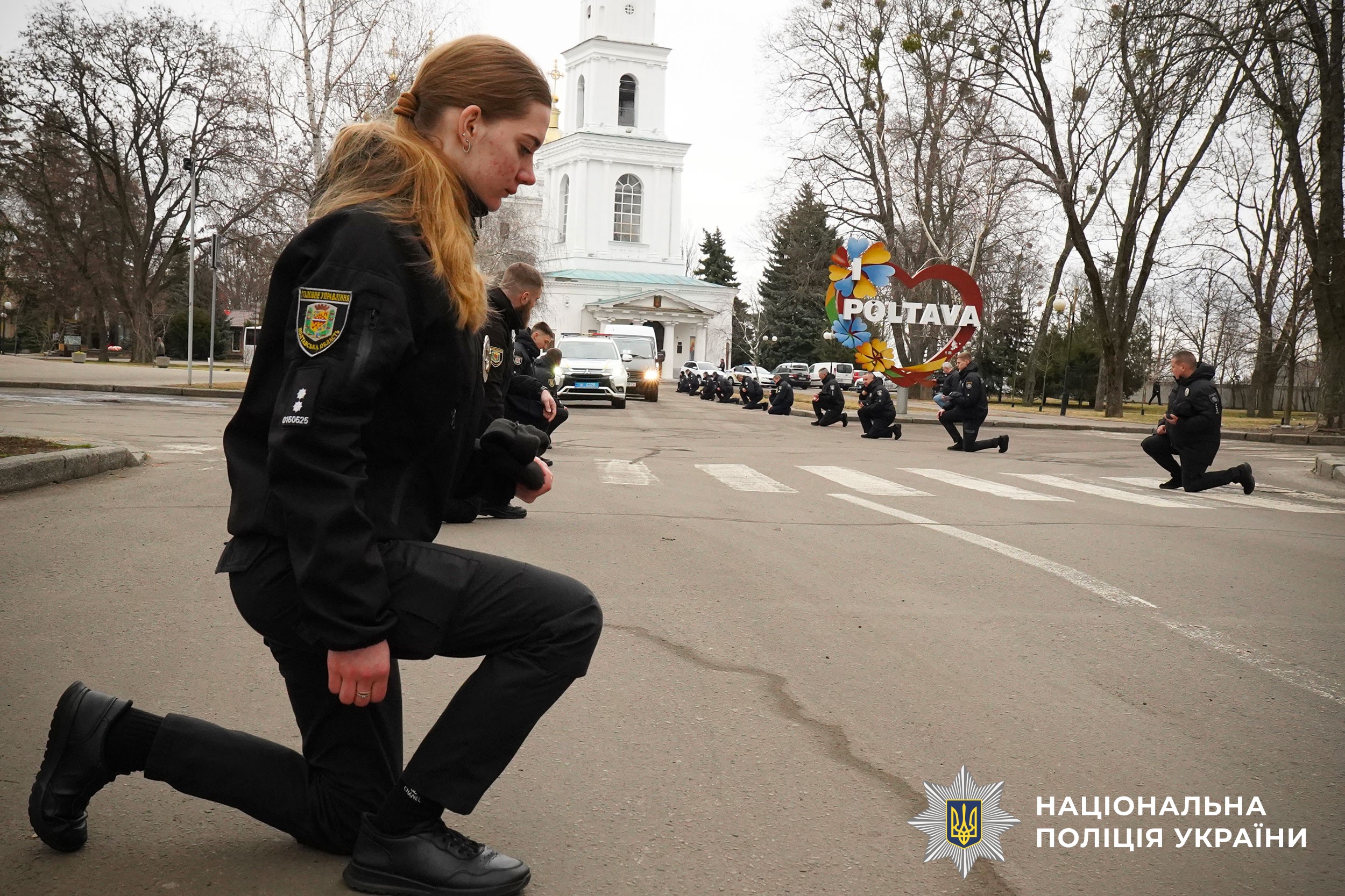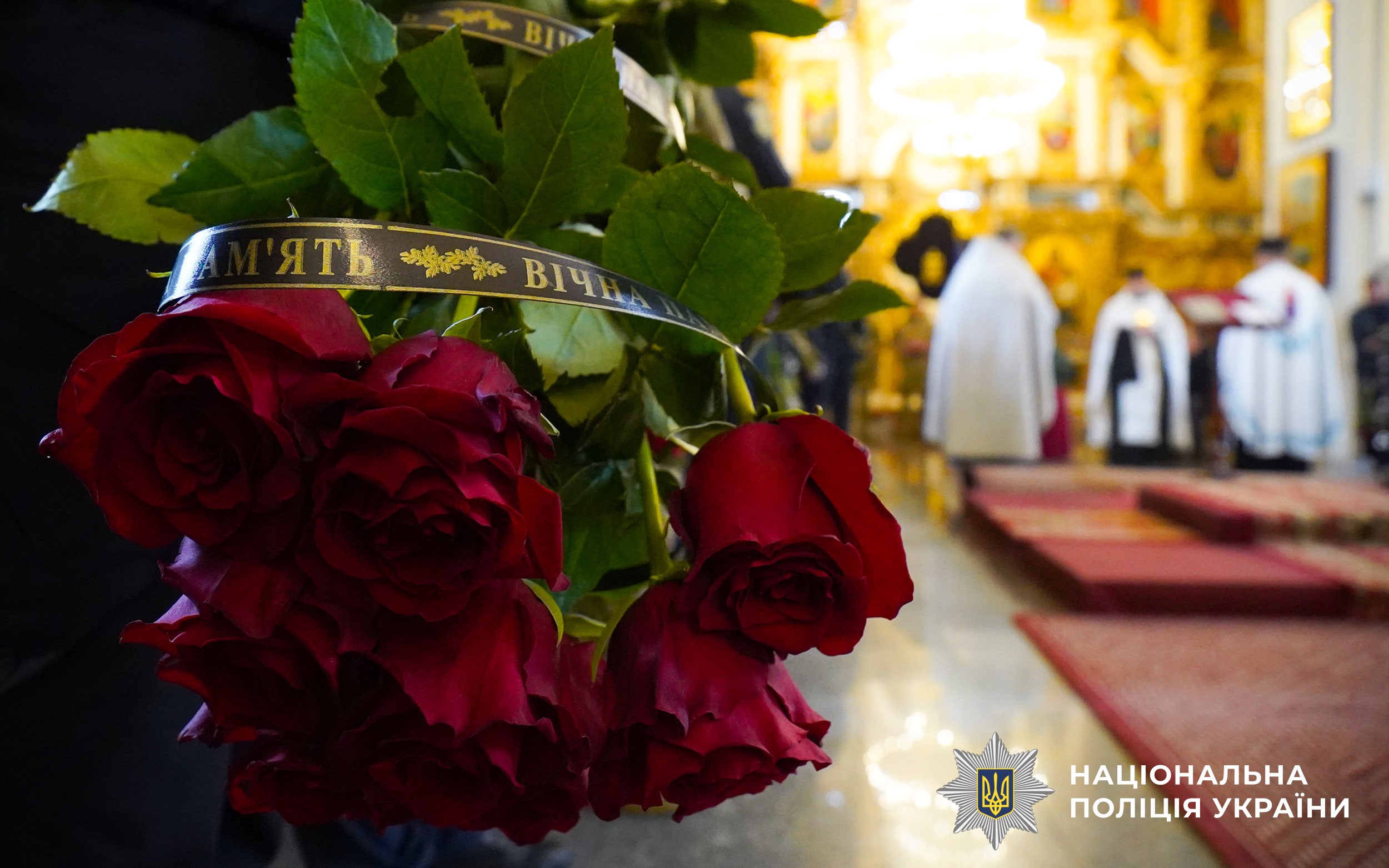Церемонія прощання розпочалася у Свято-Успенському кафедральному соборі Полтави. Аби віддати шану колезі, особовий склад поліції разом із мешканцями міста утворили живий коридор пошани. Схиливши голови та ставши на коліна, громада та колеги провели Героя в останню путь.