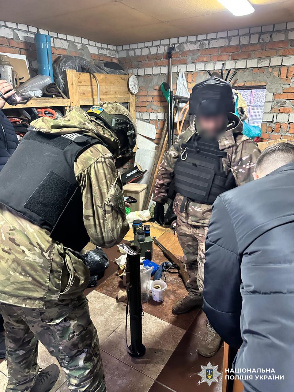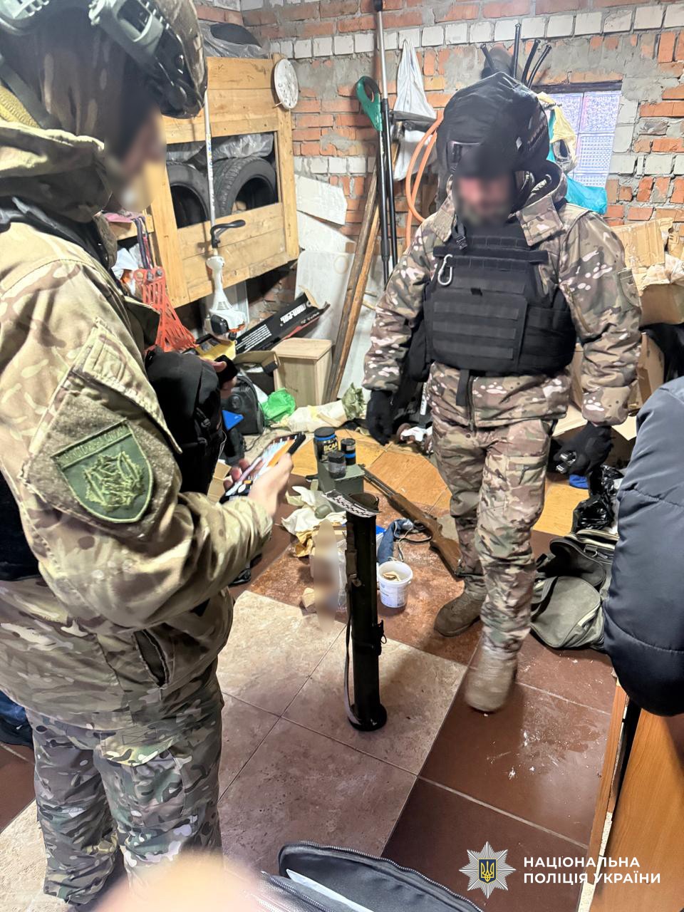 Правоохоронці провели сім одночасних обшуків у приватних домоволодіннях, гаражному приміщенні та транспортних засобах фігурантів на території Києва та Бориспільського району Київської області. Під час слідчих дій вилучено понад 11,5 тисяч набоїв різних калібрів, 196 артилерійських та інженерних боєприпасів, чотири гранатомети, серед яких реактивний вогнемет РПО-А «Шмель», дев’ять одиниць стрілецької зброї, шість гранат із запалами, механізми до стрілецької зброї та вибухові речовини.