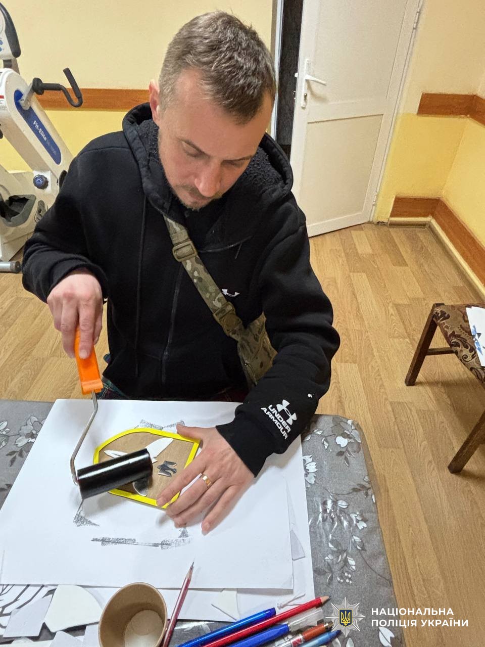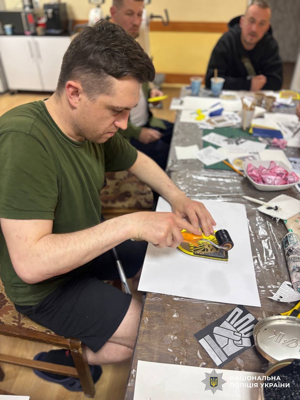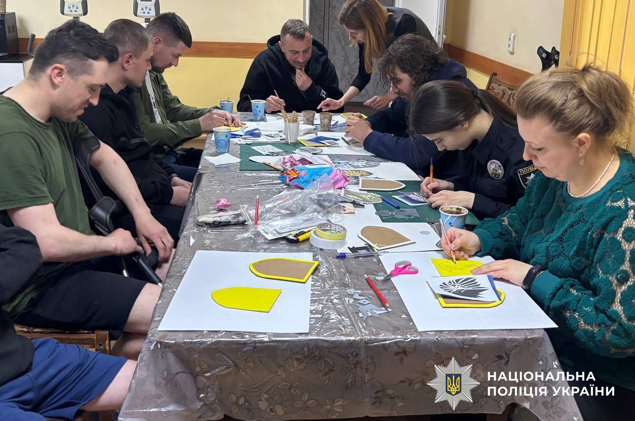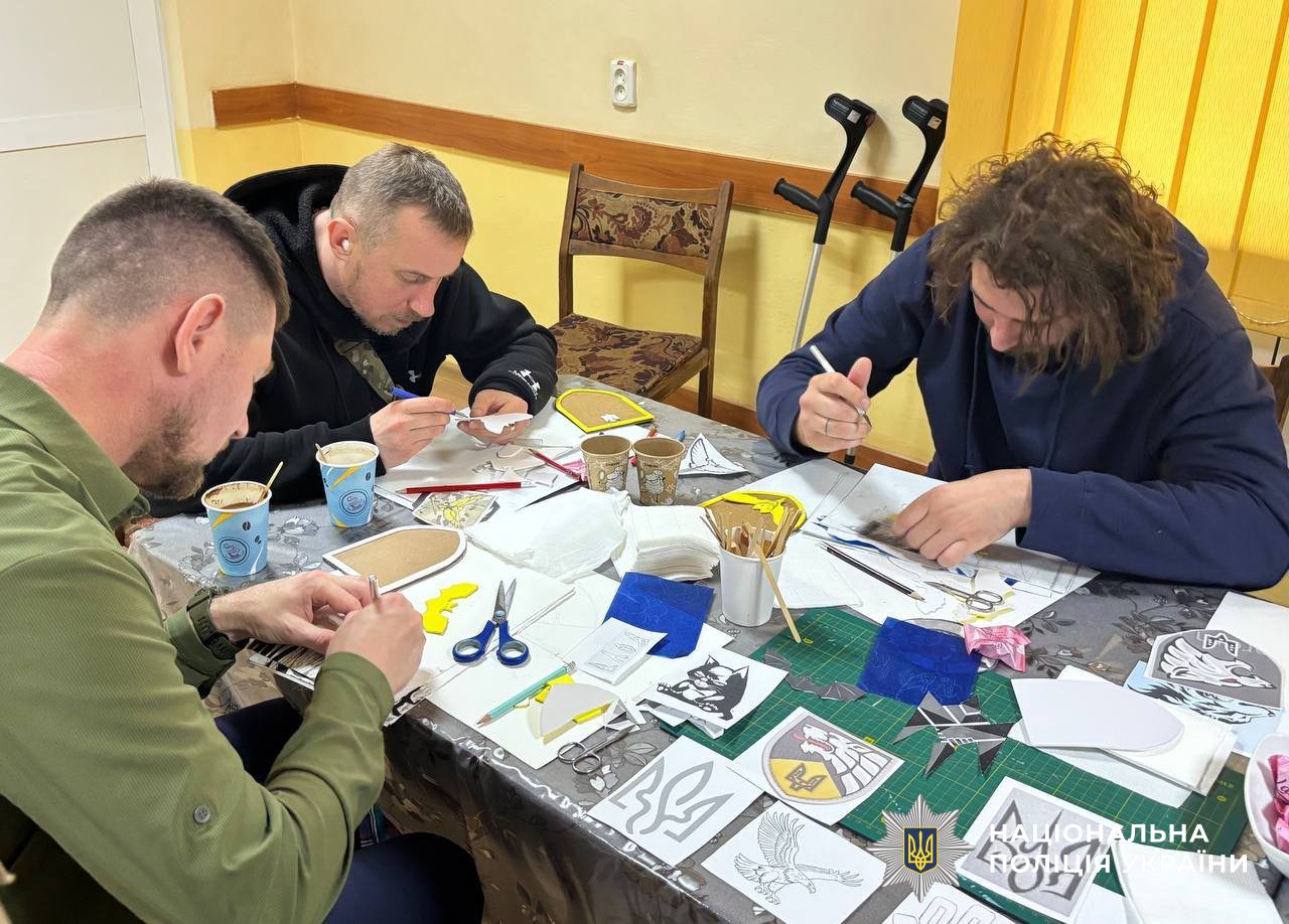 Арт-заняття під час реабілітації: у Тернополі поранені поліцейські та військові виготовляли декоративні шеврони