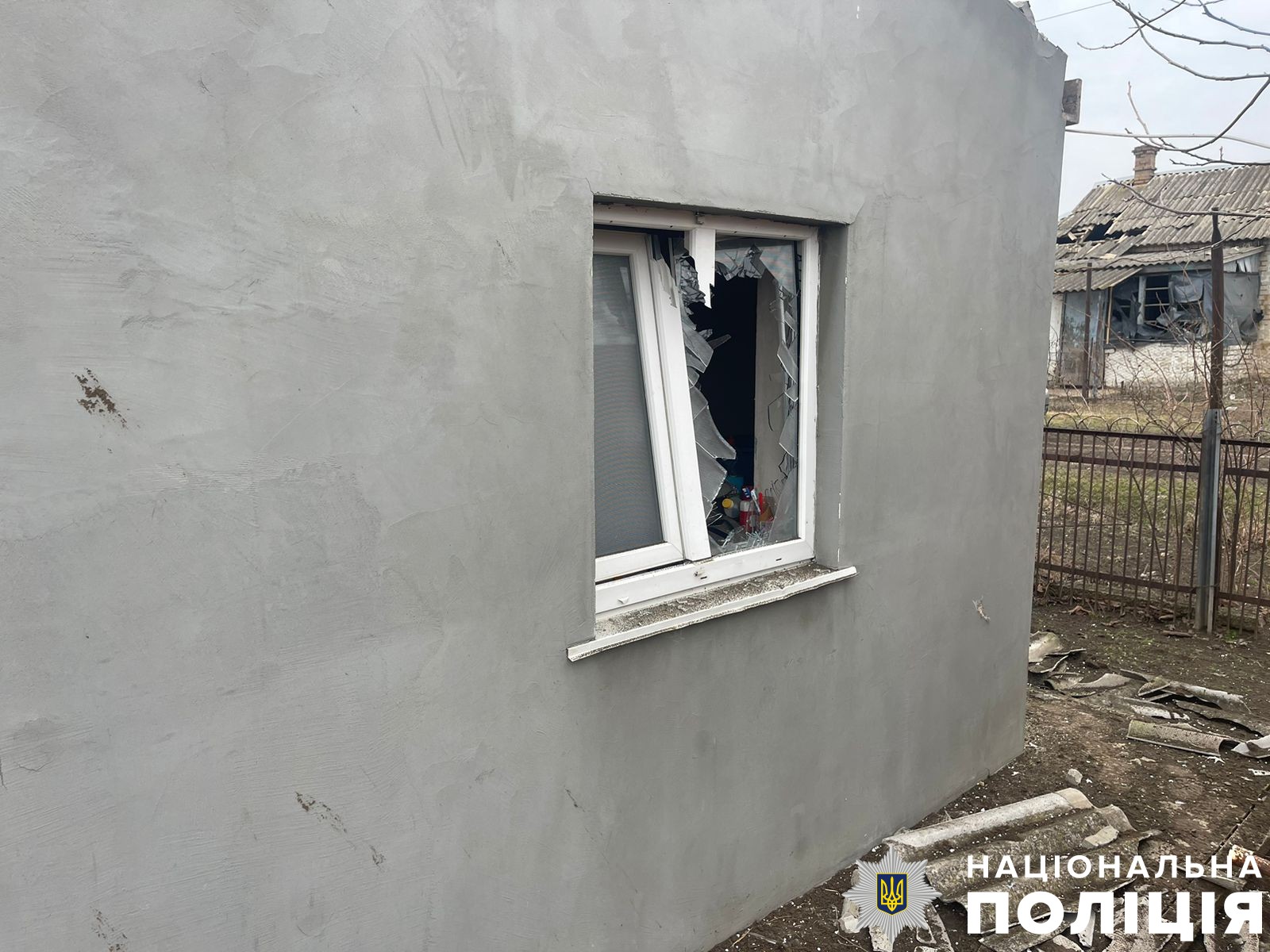 У Бериславському районі ворог ударним дроном типу «FPV» атакував поліцейських. В результаті двоє правоохоронців отримали легкі травми й були доставлені до лікарні. На Червоний Маяк окупанти скерували чотири авіабомби. Внаслідок вибухів один приватний будинок був зруйнований та ще шість пошкоджені.