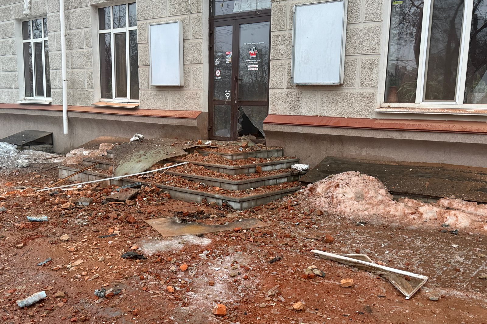 Сьогодні, близько 4 ранку, ворог наніс удар по центру Сум. Внаслідок чого пошкоджено будівлю готелю та автомобіль.