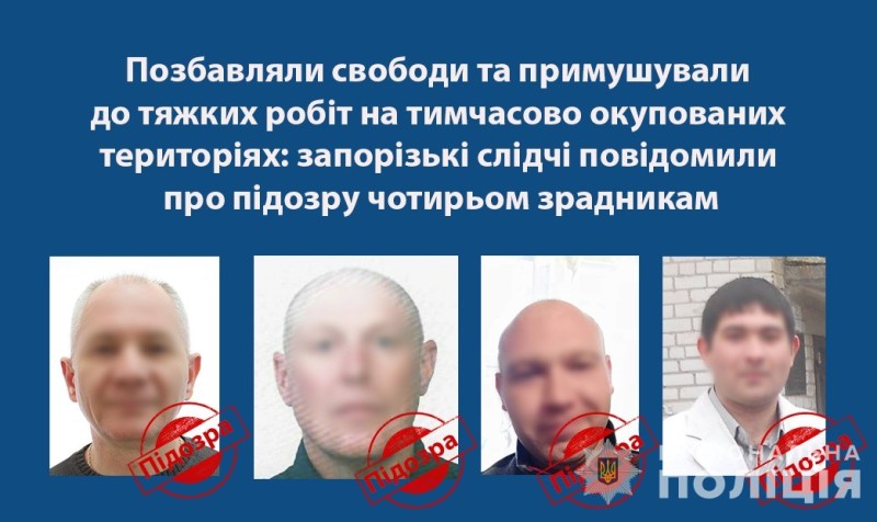 Позбавляли свободи та примушували до тяжких робіт на тимчасово окупованих територіях: запорізькі слідчі повідомили про підозру чотирьом зрадникам