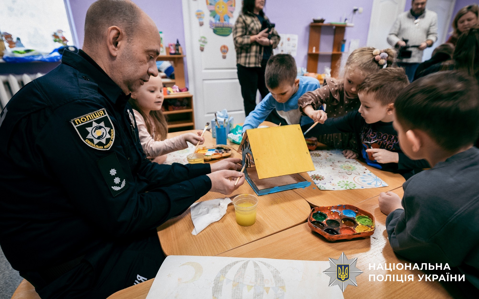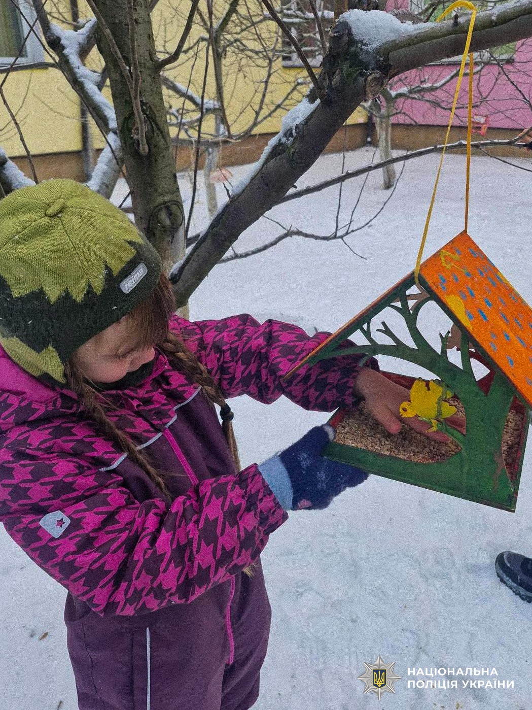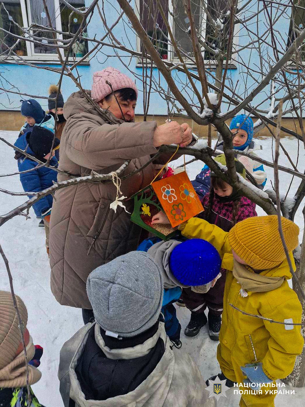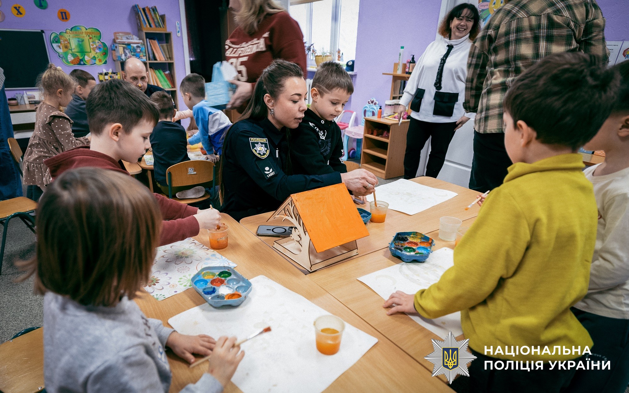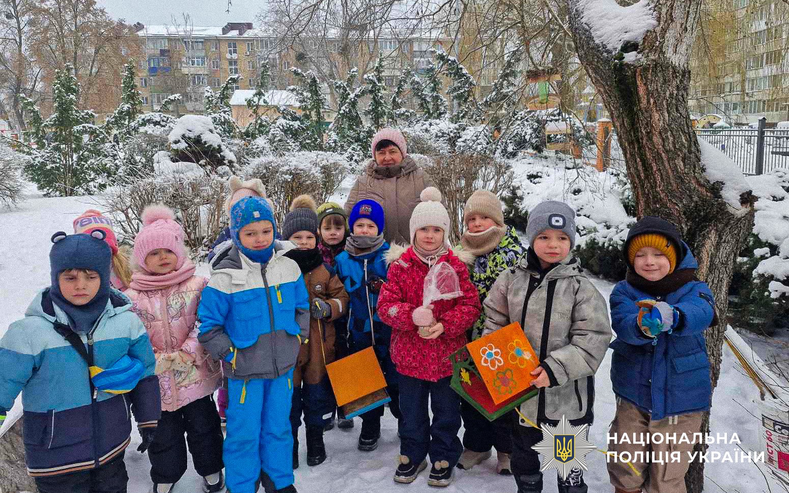 Продовженням заходу стала творча частина — разом із ювенальними поліцейськими діти розмальовували годівнички для птахів. Ці яскраві годівнички прикрасять територію садочка та допоможуть птахам пережити холодну пору року.