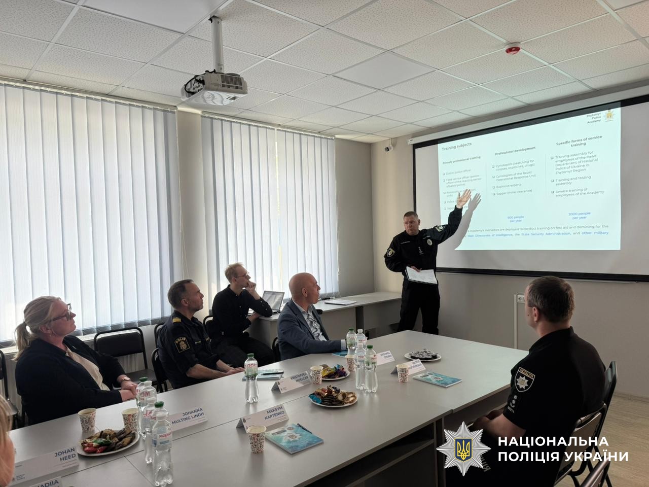 Упродовж двох днів правоохоронці спілкувалися з делегатами щодо успішного співробітництва у сфері розмінування територій, роботи кінологічних підрозділів, протидії незаконному обміну зброєю, розслідуванню воєнних злочинів та вдосконалення системи управління Національною поліцією. Також представники поліції Швеції працюють у складі Консультативної місії Європейського Союзу та залучені до роботи із Нацполіцією у вищеперерахованих сферах.