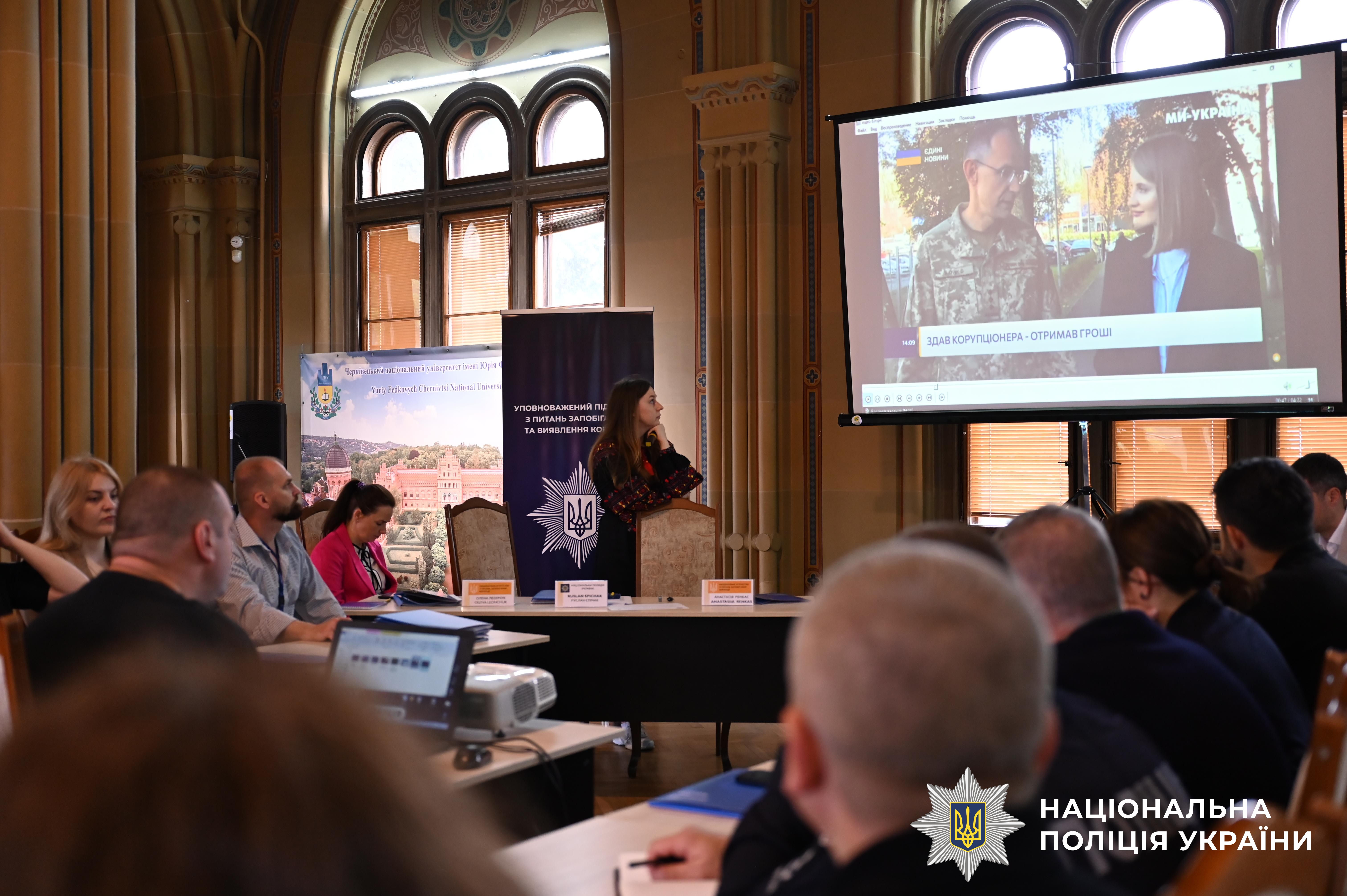 Захід відбувся за участі представників Національного агентства з питань запобігання корупції, Національної поліції України та міжнародних експертів Консультативної місії Європейського Союзу, де активну участь приймали уповноважені підрозділи з питань запобігання та виявлення корупції Головних управлінь Національної поліції в Чернівецькій, Вінницькій, Тернопільській та Хмельницькій областях, а також Департаментів внутрішньої безпеки, стратегічних розслідувань, поліції охорони.