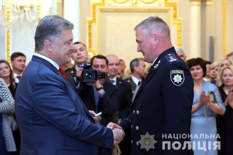 З нагоди Дня захисника України Президент України Петро Порошенко відзначив керівника Національної поліції Сергія Князєва спеціальними званнями. Церемонія вручення відбулася у Маріїнському палаці у Києві.