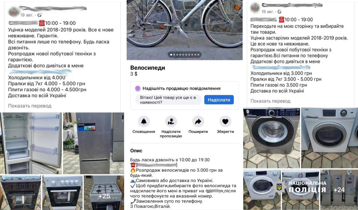 Зловмисник в соціальних мережах розміщував фейкові оголошення з продажу велосипедів та кухонної побутової техніки. Під час спілкування з потенційними покупцями, він просив скинути йому завдаток в розмірі від 500 до 1000 гривень. Після того, як він отримував гроші – на зв’язок він більше не виходив.