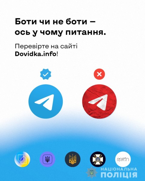Будьте пильними та не дайте ворогам жодного шансу ввести вас в оману. Перевіряйте боти за посиланням: https://dovidka.info/botchecker/. Ботчекер покаже, чи справжній чат-бот, а також те, скільки у нього двійників.