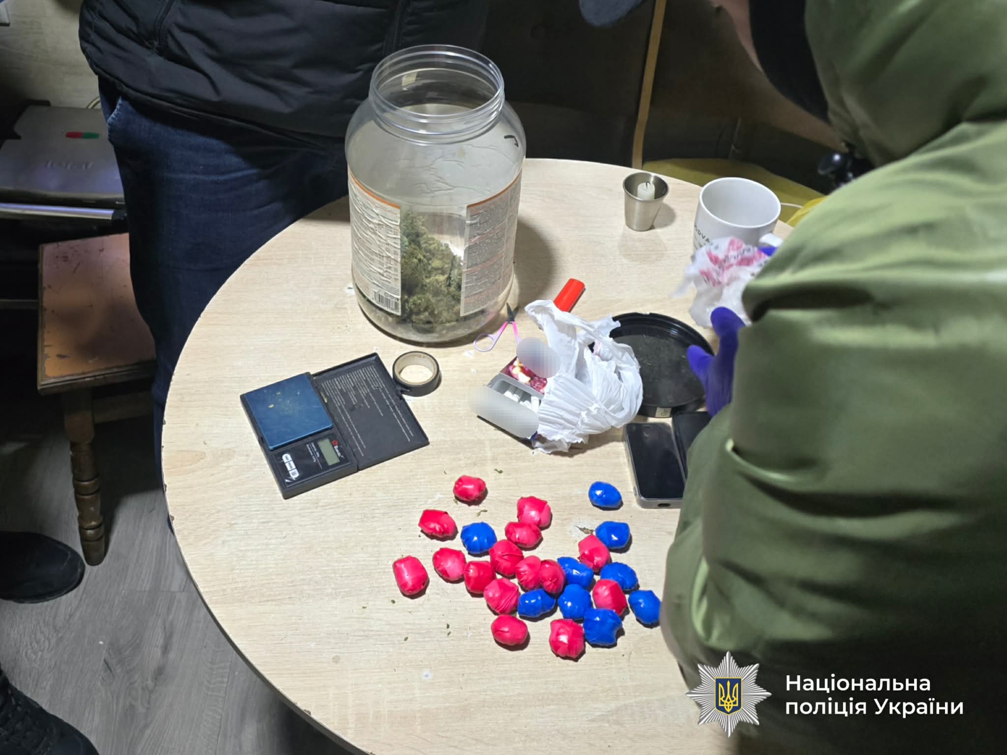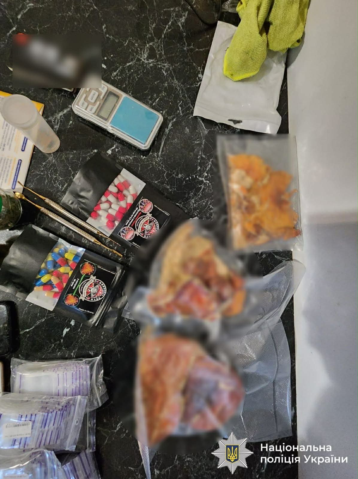 23 січня поліцейські провели близько 20 санкціонованих обшуків за місцями проживання фігурантів, а також у належних їм транспортних засобах. У результаті слідчих дій вилучено близько 13 кілограмів канабісу, близько 50 таблеток екстазі, псилоцибінові гриби, майже 100 псилоцибінових таблеток, 850 грамів амфетаміну, електронні ваги, пристрої для подрібнення та фасування наркотичних засобів, а також значну кількість розфасованих зіп-пакетів із наркотичним вмістом. Орієнтовна вартість вилучених наркотичних засобів за цінами чорного ринку становить близько 10 мільйонів гривень. Крім того, вилучено комп’ютерну техніку, банківські картки, мобільні телефони, чорнові записи та три автомобілі.