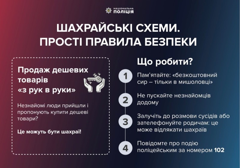 Поліція Дніпра звертається до громадян бути обачним. Перевіряйте відгуки про товар і продавця. Зазначені в оголошеннях номери телефонів перевіряйте через пошукові системи Інтернету. Не виключено, що хтось уже став жертвою шахрая і попереджає про це інших. Зберігайте всі документи, надані продавцем, а також електронне листування. У разі виникнення непорозумінь, вони стануть вашим підтвердженням здійснення покупки. У разі, якщо ви стали жертвою шахраїв, звертайтесь на спецлінію «102».