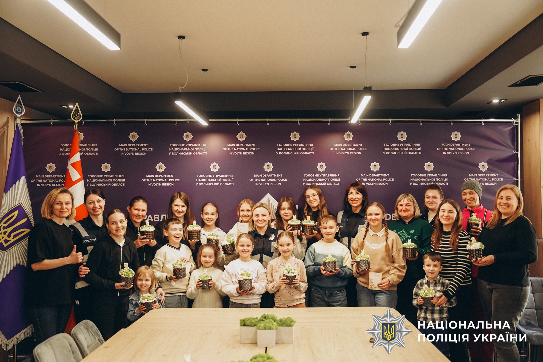 У приміщенні ГУНП у Волинській області вони зібрали дітей та рідних загиблих, зниклих безвісти, поранених поліцейських-добровольців та тих, хто нині виконує бойові завдання на Сході.