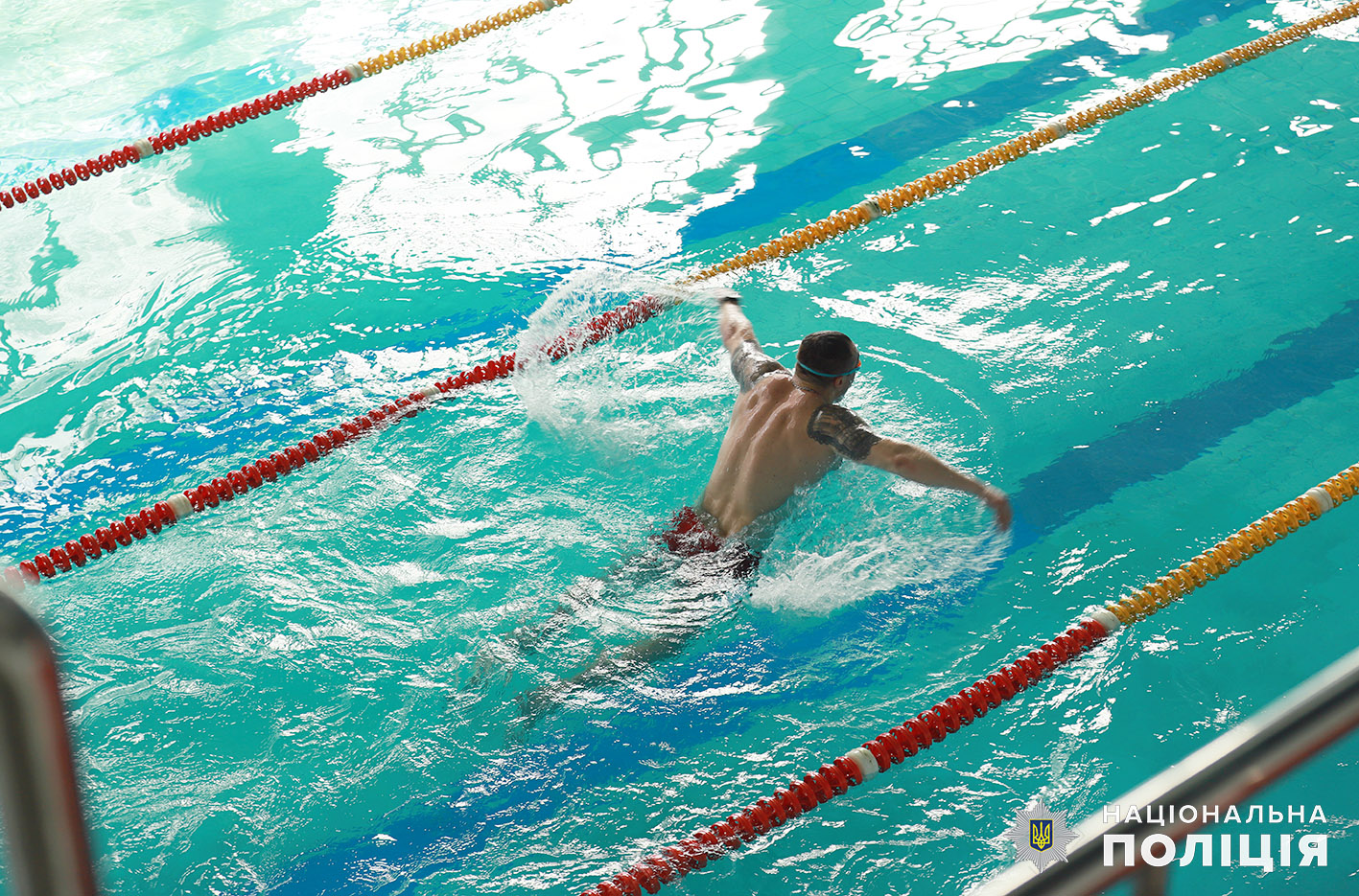 В Головному управлінні Національної поліції в Хмельницькій області активно реалізовується соціально-реабілітаційний проєкт Міністерства внутрішніх справ України «Незламні», спрямований на підтримку поранених правоохоронців. Однією з ключових складових цієї ініціативи є організація на постійній основі занять з плавання, які проводяться у басейні під керівництвом професійного тренера.