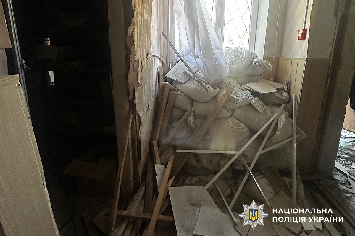 Через ворожі атаки пошкоджено адміністративну будівлю поліції, майно всередині та кілька автомобілів. Дві службові автівки поліції повністю знищені. Також пошкоджено автомобіль рятувальників, які прибули на виклик для евакуації постраждалих.