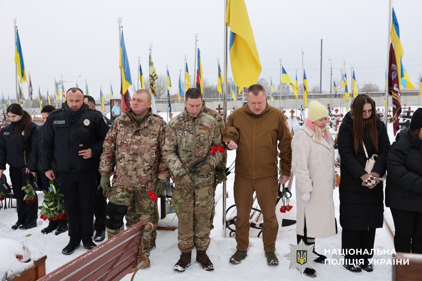 Сьогодні до перших роковин загибелі правоохоронців одночасно відбулись акції пам’яті: на площі Перемоги у Вінниці та на Алеї Слави у селищі Дашів Гайсинського району, звідки родом полеглі. У заходах взяли участь рідні та близькі захисників, керівники Головного управління Нацполіції області, колеги, побратими, представники місцевої влади та небайдужі жителі громад. Присутні віддали шану бійцям хвилиною мовчання та поклали квіти до місць поховань.