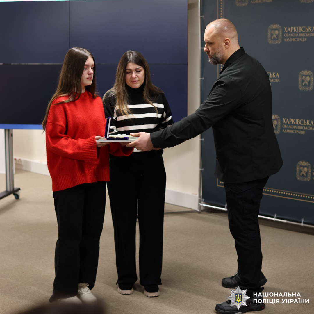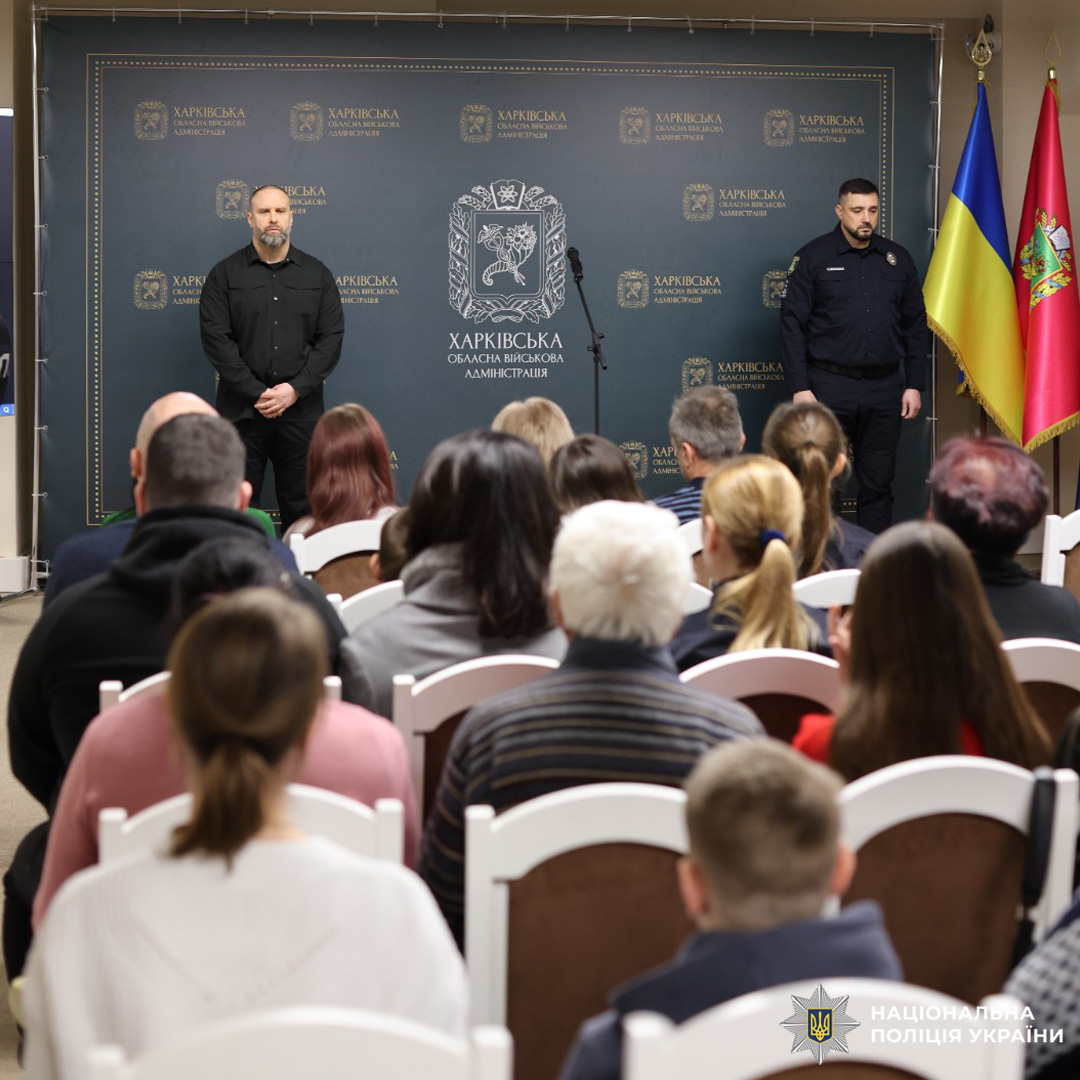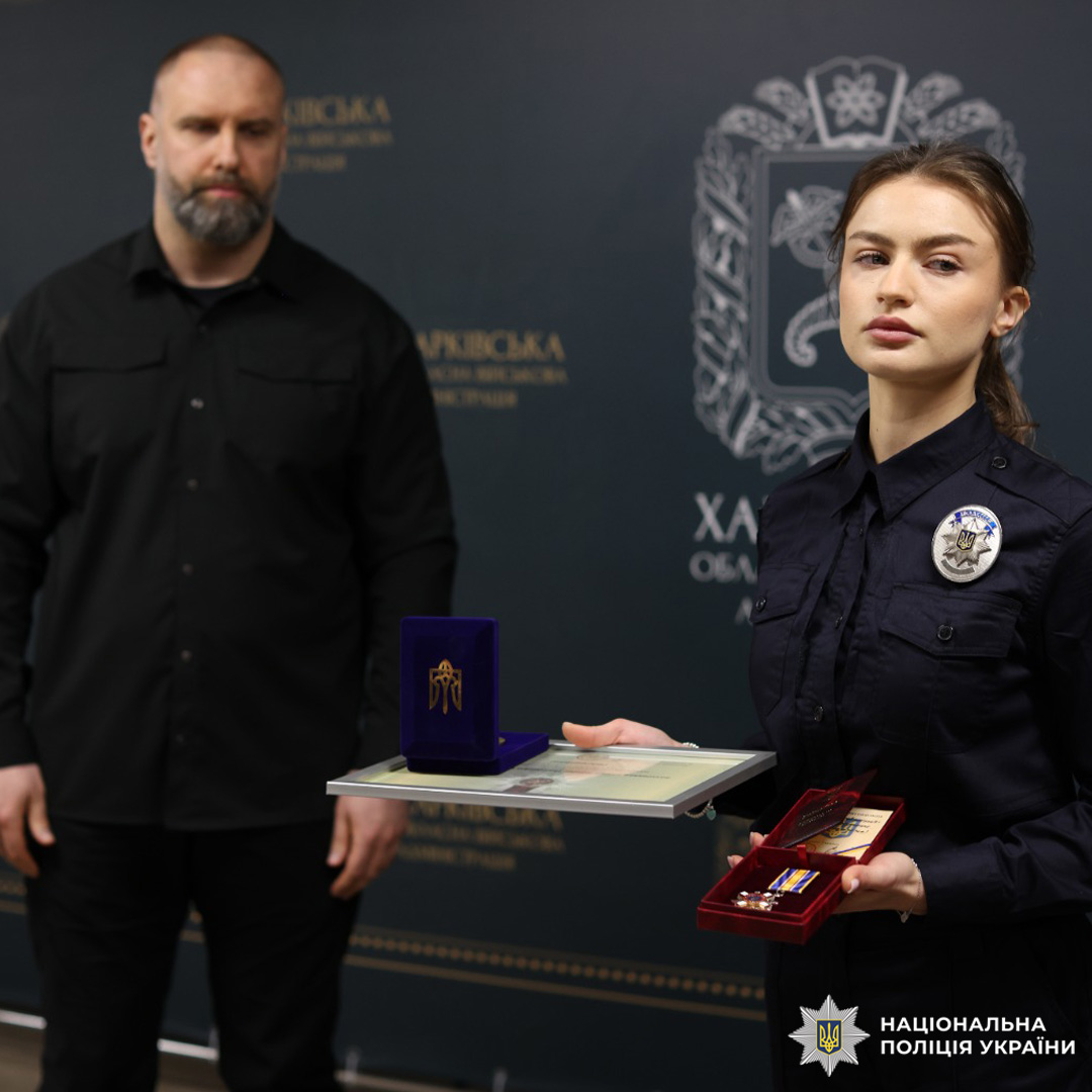 Від імені Президента України державні нагороди родинам 14 поліцейських Харківщини, які героїчно загинули під час виконання службових і бойових завдань, вручили голова Харківської обласної військової адміністрації Олег Синєгубов та начальник Головного управління Національної поліції в Харківській області Петро Токар.