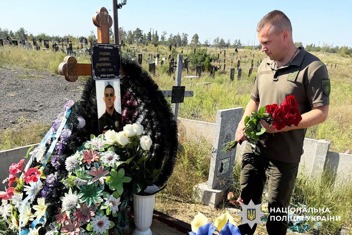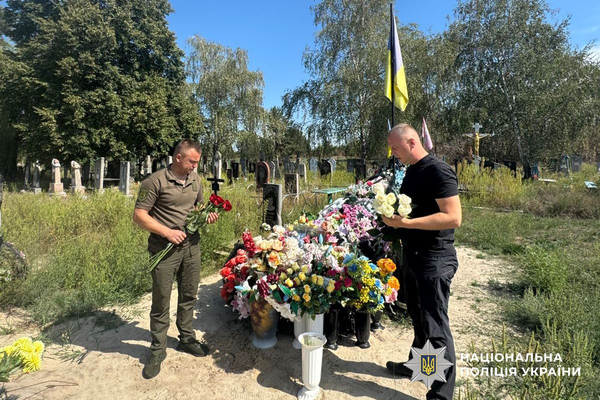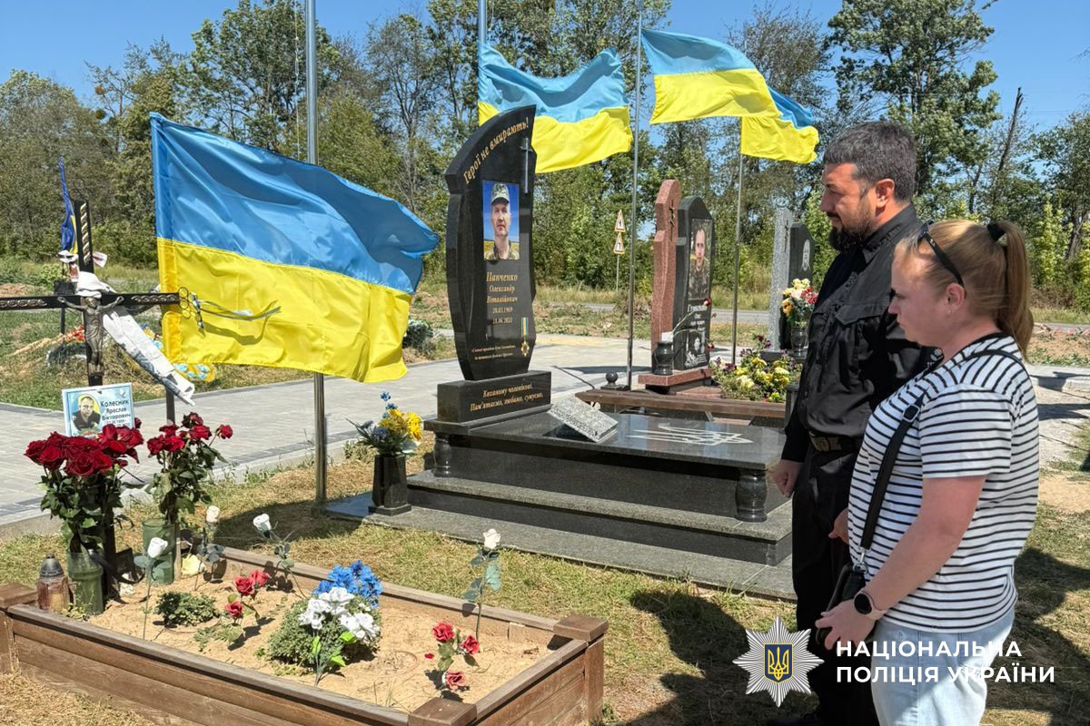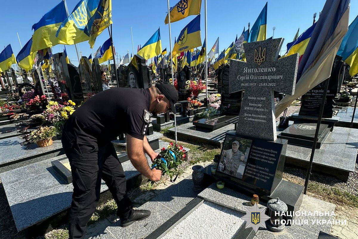 У День пам’яті захисників України поліцейські Донеччини поклали квіти на місцях поховання побратимів, а також приїхали підтримати їхні сім’ї, які втратили найдорожчих людей.