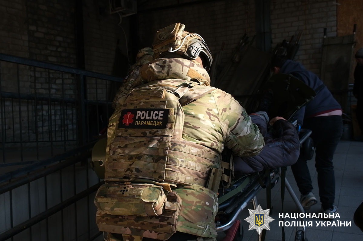 Поліцейські документують наслідки атаки в центрі міста. Поранених рятували парамедики поліції.