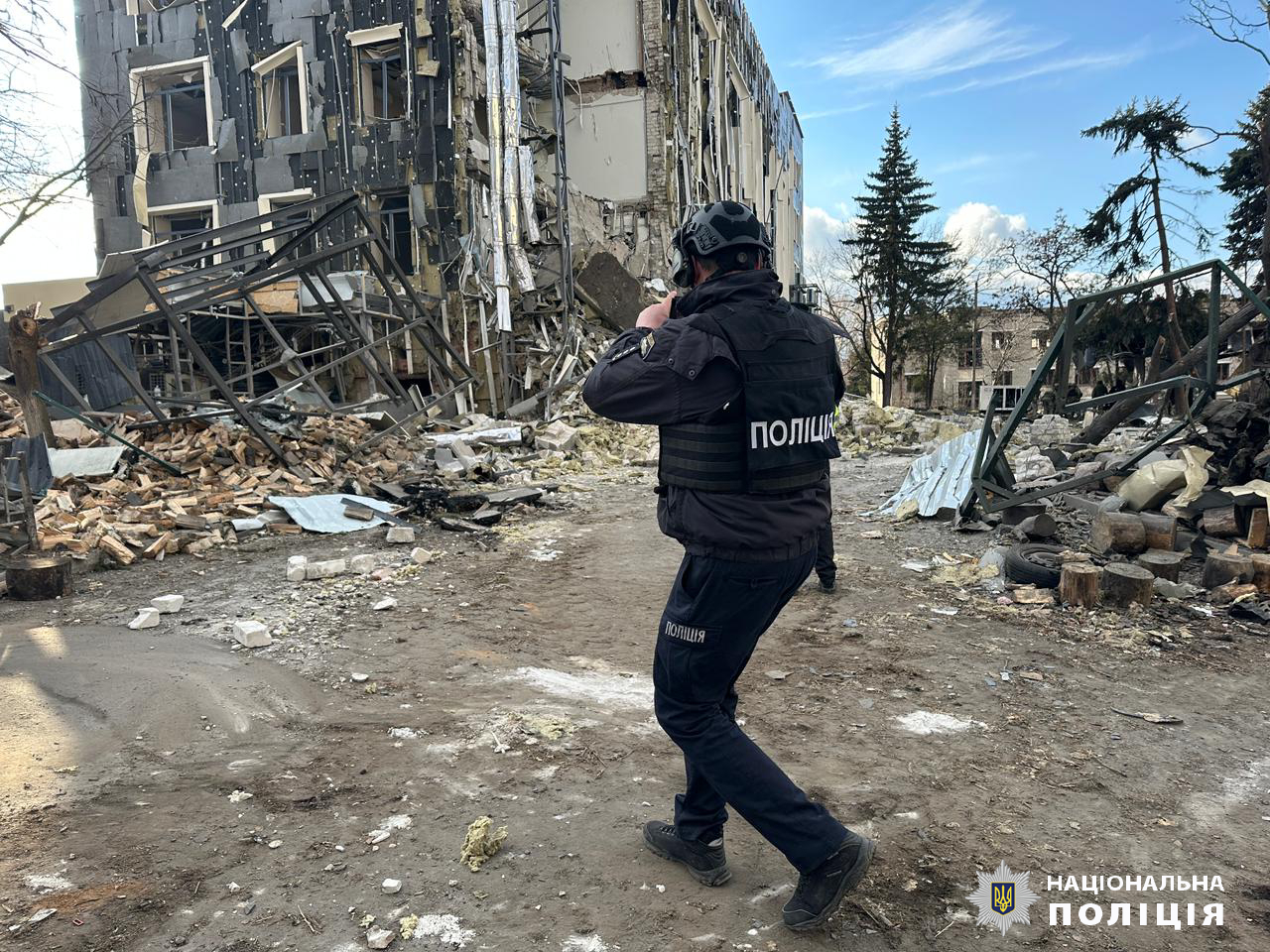 Сьогодні, 4 лютого, близько 11:40 військові рф завдали ракетної атаки по місту Ізюм. Внаслідок обстрілу частково зруйновані та пошкоджені адміністративні будівлі, житлові будинки. На місце події оперативно прибули слідчо-оперативні групи поліції, рятувальники та медики. Правоохоронці проводять огляд місця події, фіксують наслідки злочину та збирають доказову базу.