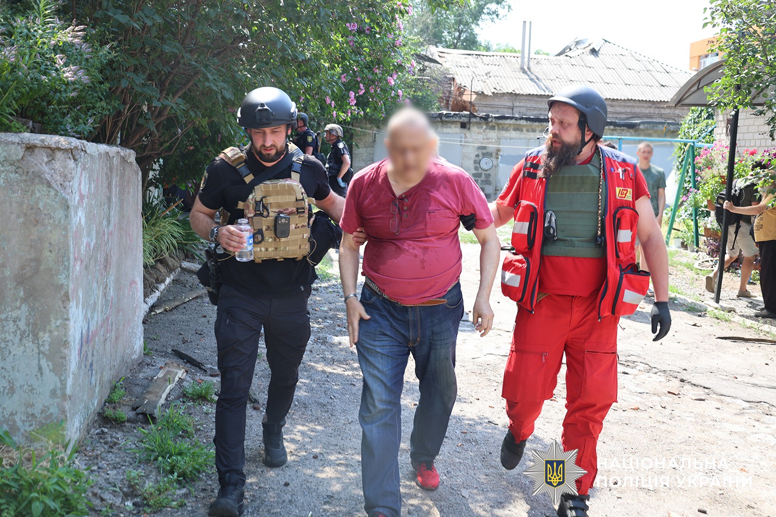 На місцях ворожих влучань допомогу потерпілим надають парамедики поліції та медичні працівники. Працюють слідчо-оперативні групи, співробітники ДСНС та комунальні міські служби.