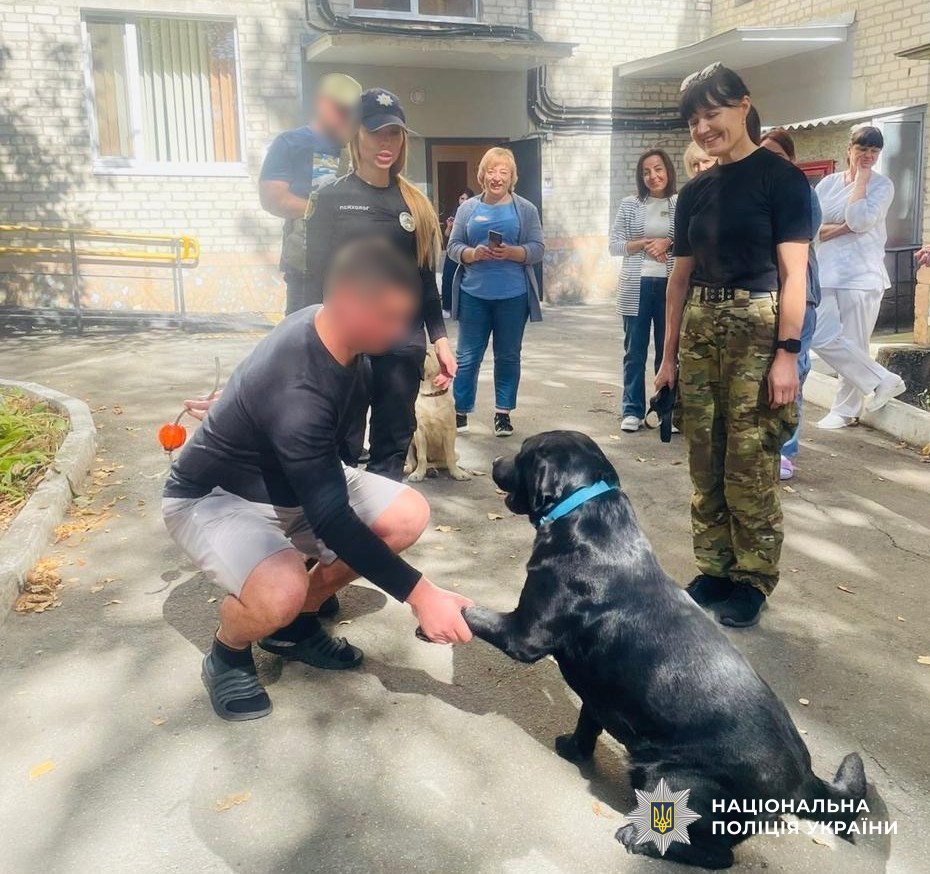 Сеанс каністерапії для воїнів: поліцейські Кіровоградщини дбають про відновлення захисників
