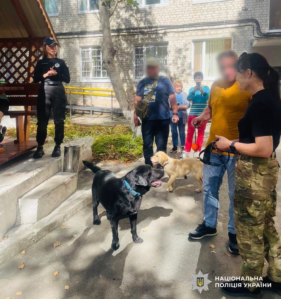 У рамках проєктів «Пункт психологічних практик», «Mental tutor» та Всеукраїнської програми ментального здоров’я «Ти як?» кінологи разом із представницею підрозділу психологічного забезпечення Анастасією Гінцар провели захід для поранених бійців, які проходять лікування у відомчому закладі.