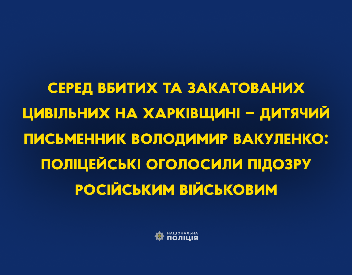 Серед вбитих та закатованих цивільних на Харківщині – дитячий письменник Володимир Вакуленко: поліцейські оголосили підозру російським військовим