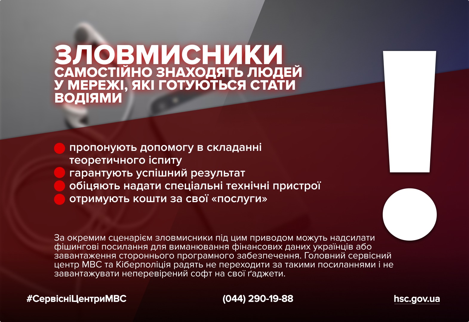 У соціальних мережах шахраї за винагороду пропонують допомогу у складанні теоретичного іспиту в сервісному центрі МВС, навіть без належних знань Правил дорожнього руху. При цьому вимагають передоплату, а замовник може втратити гроші, так і не отримавши “послуги”.