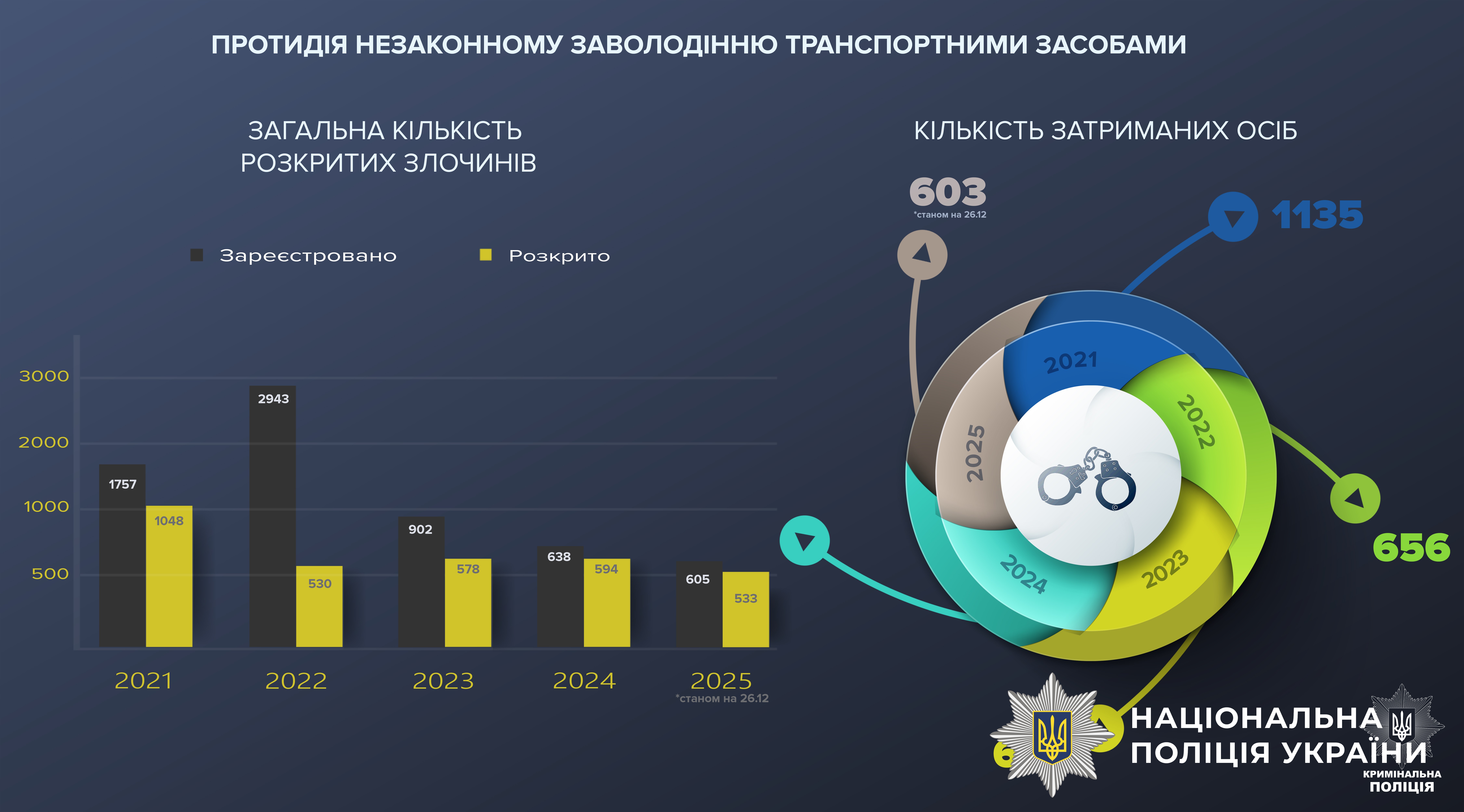 — У 2022 році був пік активності автокрадіїв. Яка загальна статистика викрадень автомобілів в Україні за 2025 рік? Чи зростає або зменшується проблема?